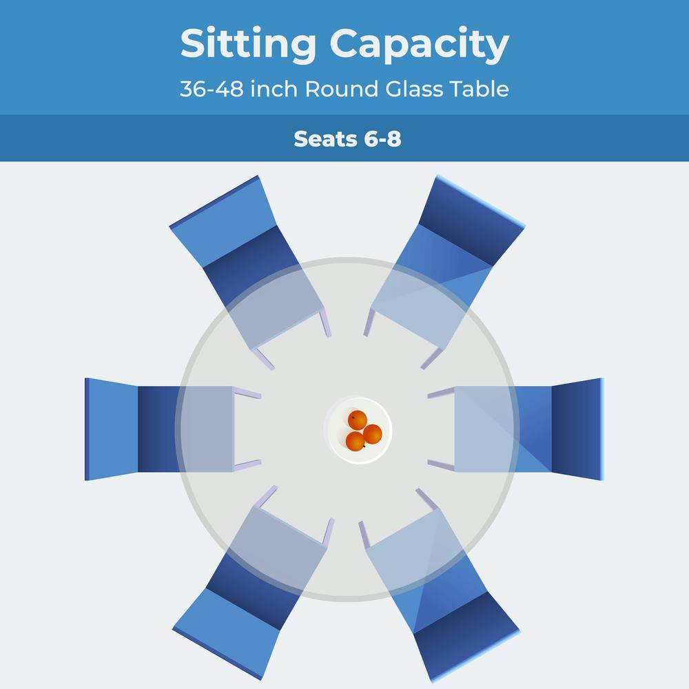 - Available sizes: from 12 in. up to 72 in. round glass table top