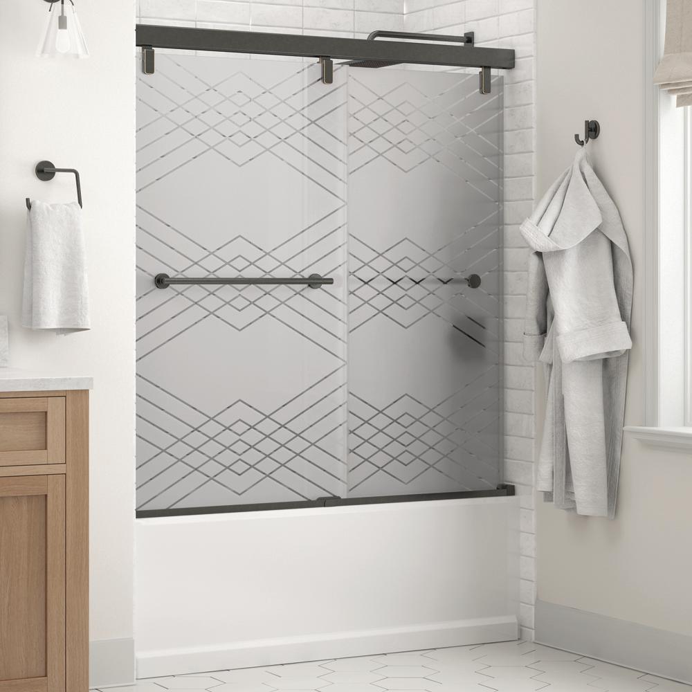 Whether you’re looking for a moderate DIY project or working on a bathroom remodel, upgrading your bathroom with a new sliding shower door is easy with the Delta 1-2-3 custom sliding shower door program. Delta’s custom glass shower door program offers 1000s of design combinations by choosing your glass shower panels, shower door track, and shower door handles to build a unique, personalized glass shower door. Clean, sleek and modern, the Mod bathtub door track in nickel features a soft close system paired with a reversible flat track, and minimal metal components, for the perfect balance of form and function. Make a statement with standard 1/4 in. ANSI certified tempered glass shower panels, featuring a smooth and completely frosted glass with a soft, satin-like look that is more private. The Lyndall sliding shower door handles in nickel feature two convenient towel bars for extra bathroom storage in a contemporary design silhouette that beautifully demonstrates simplistic, modern elegance.