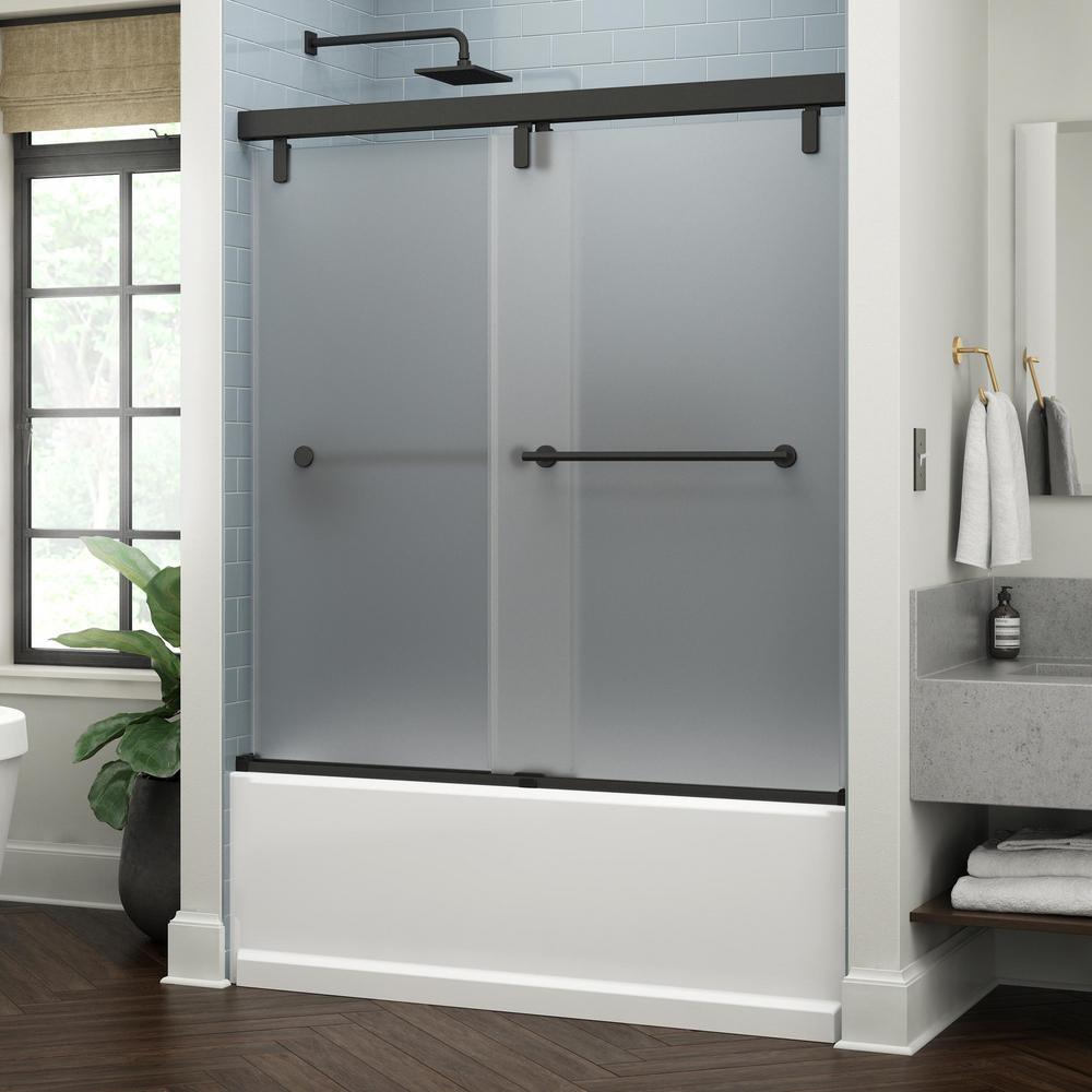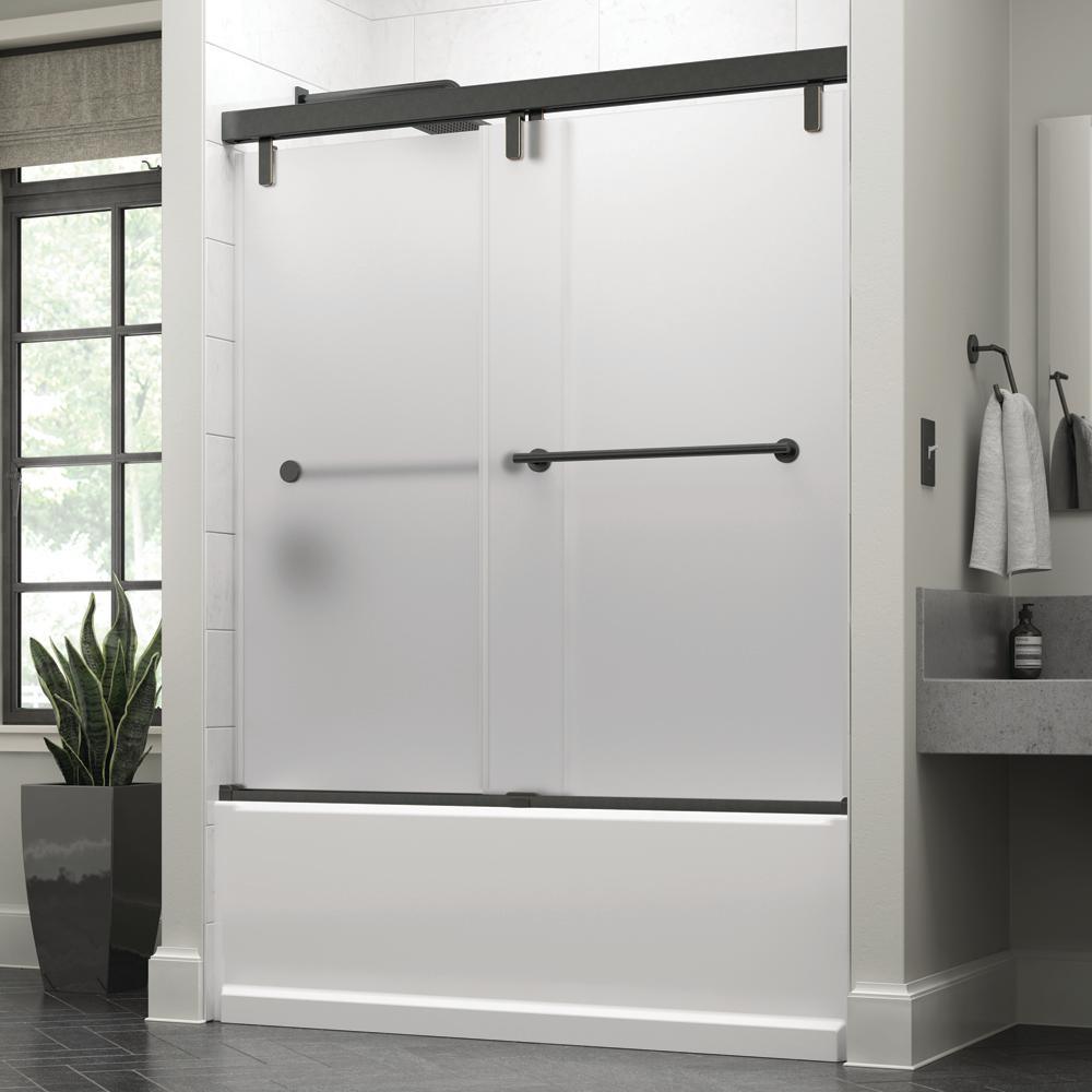• Mod sliding bathtub door designed to accommodate out-of-plumb (uneven, not vertically level) conditions totaling 3/8 in.