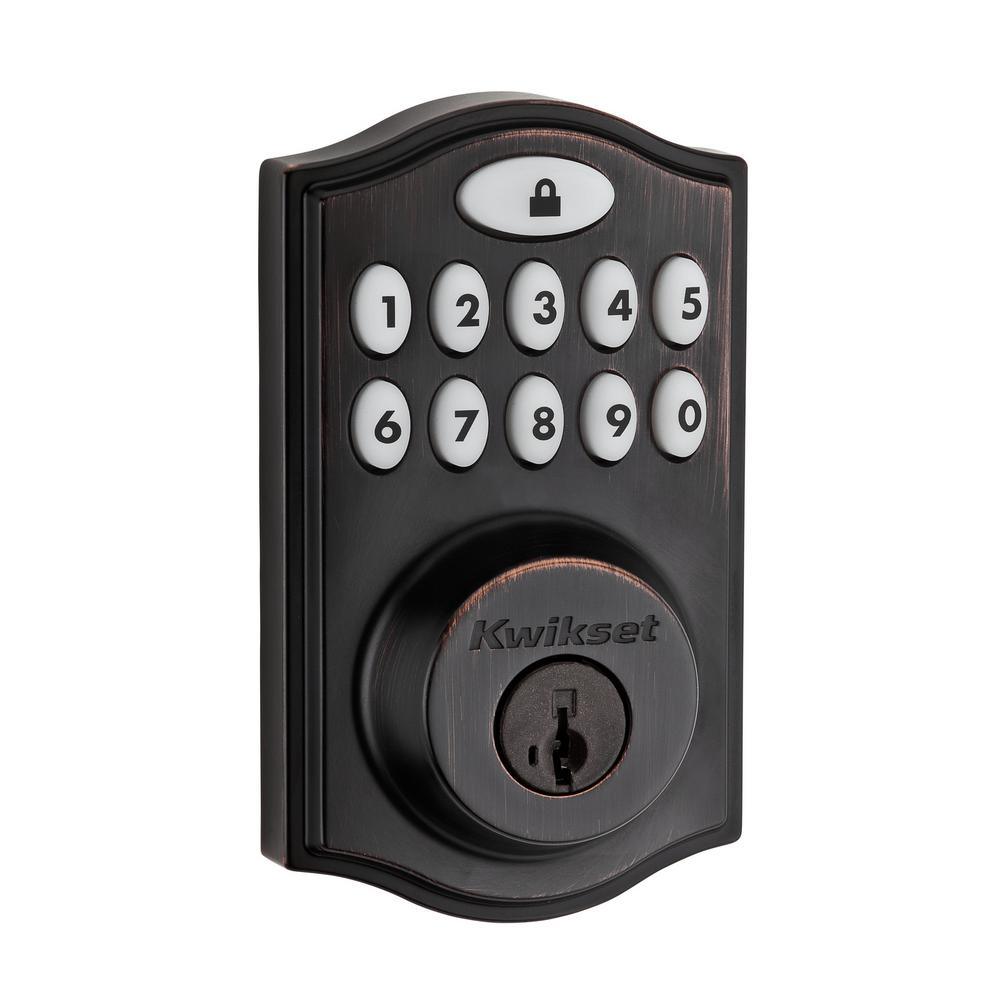 The SmartCode touchpad smart lock with Home Connect technology enables the lock to wirelessly communicate with other devices in home. The lock allows the user (through a web enabled device) to remotely check the door lock status, lock or unlock the door and receive notifications. SmartCode is a one-touch locking motorized deadbolt. With your personalized code, you can enter your home with the convenience of keyless entry and the back-lit keypad provides increased visibility. SmartCode is easy to install, program and use, and operates on 4 AA batteries. It also features SmartKey Security as the back-up keyway. This single cylinder deadbolt can be locked or unlocked by using the keypad or key from the outside as well as the turn button from the inside. The Venetian Bronze finish is hand-rubbed to reveal unique bronze highlights and provides a rich and warm complement to the product's style.