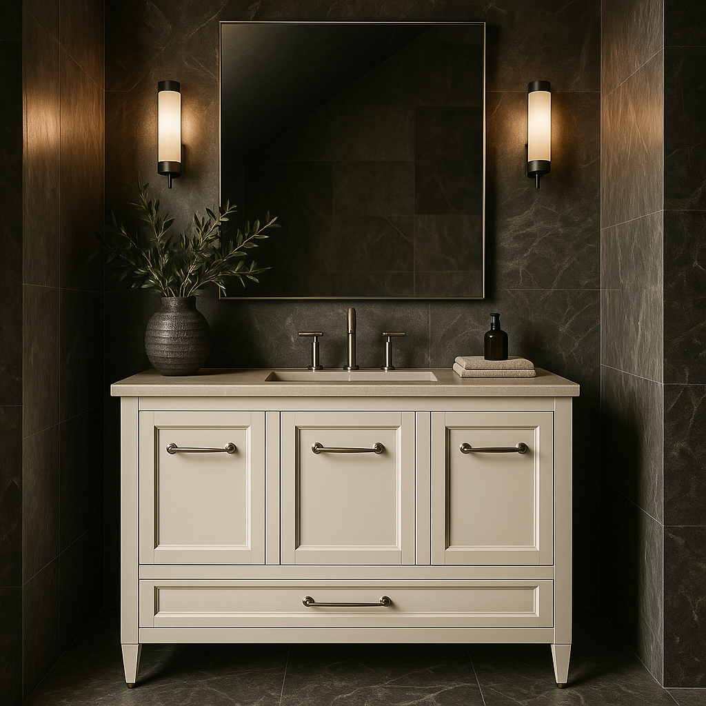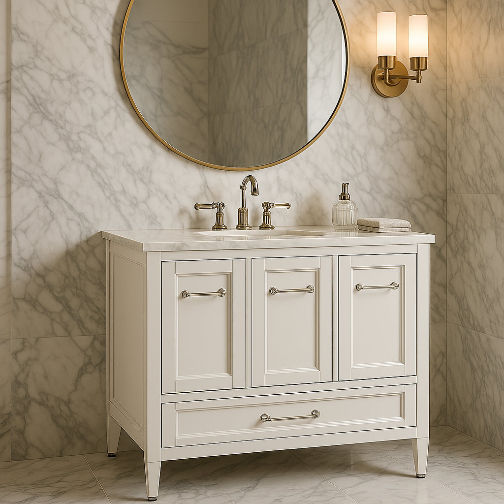 The Claxby Vanity Cabinet is a masterpiece of modern bathroom design, blending functionality with timeless elegance. Its polished white finish and transitional panel doors create a sophisticated aesthetic that complements any decor. The soft-close hinges and ample storage options make it both practical and luxurious. Pair it with a matching mirror and sleek fixtures to elevate your bathroom into a serene retreat.