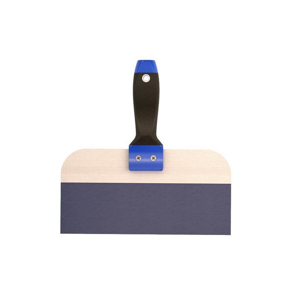 This taping knife is made with a premium blue steel blade. This taping knife sports an ergonomic comfort grip handle that provides a slip-resistant and comfortable use. The knife mounting is tempered aluminum for added strength. 1 of the most light weight knives on the market.