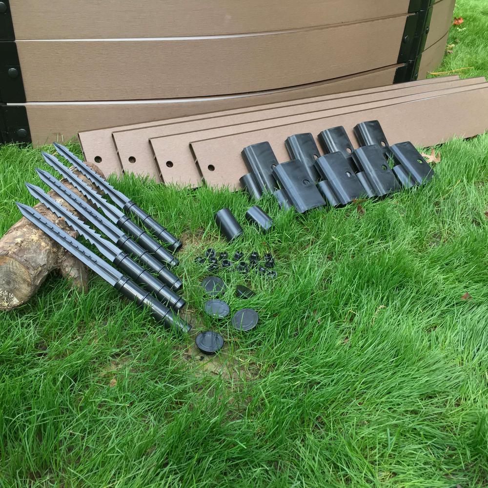Frame It All playground borders were created by a landscape designer to be an easy, secure and cost-effective way to contain wood and rubber safety surfacing under your child's play area. Unlike heavy-wood ties that splinter (and are labor intensive), Frame It All boards and brackets go together with ease. Our borders are made from sustainably sourced wood fibers and food-grade HDPE recycled plastic, so your children are safe from splinters and hazardous chemicals. Each kit contains 4 straight Uptown Brown 1 profile boards and snap-lock brackets totaling 16 lin. ft. Snap-lock brackets require no tools simply slide and snap in place. Curved kits are also available and can be used interchangeably with straight kits to create natural borders that integrate with your landscape. Helpful hint. When calculating the dimensions of your playground border, a good rule of thumb is to allow 2X the height of your swing set in front and behind the swing, and 6 ft. on either side of the swing set. For example, if your swing set is 7 ft. H, you would want 14 ft. of safety surface in front of and behind the swing, for a total depth of 28 ft.