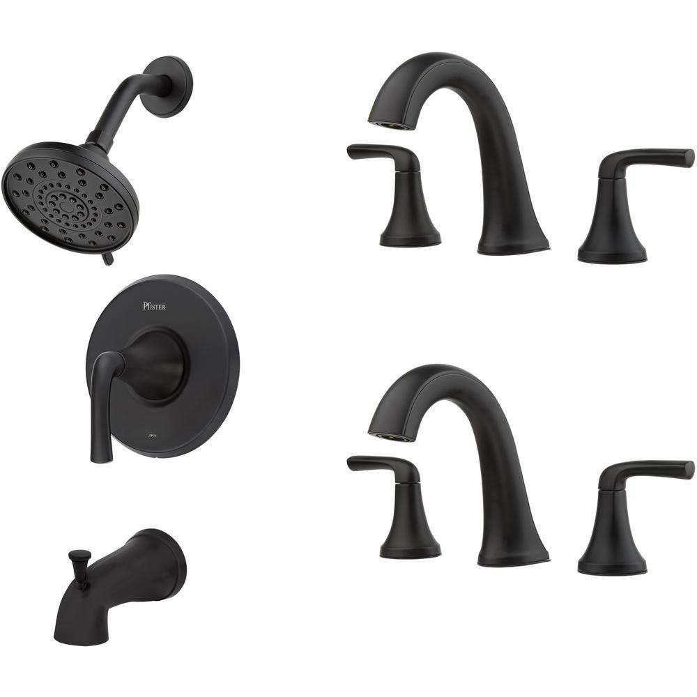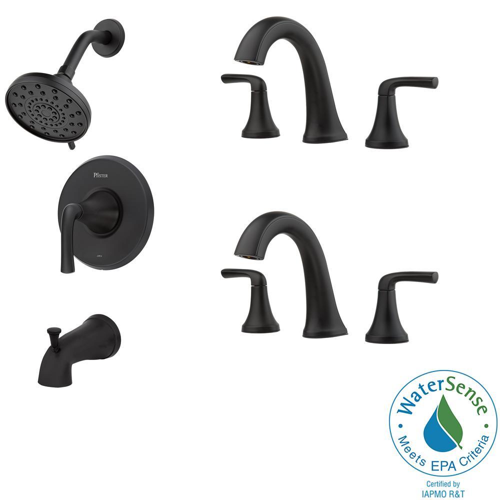 Ladera Single-Handle 3-Spray Tub and Shower Faucet and 8 in. Widespread Bathroom Faucet in Matte Black (2-Pack)