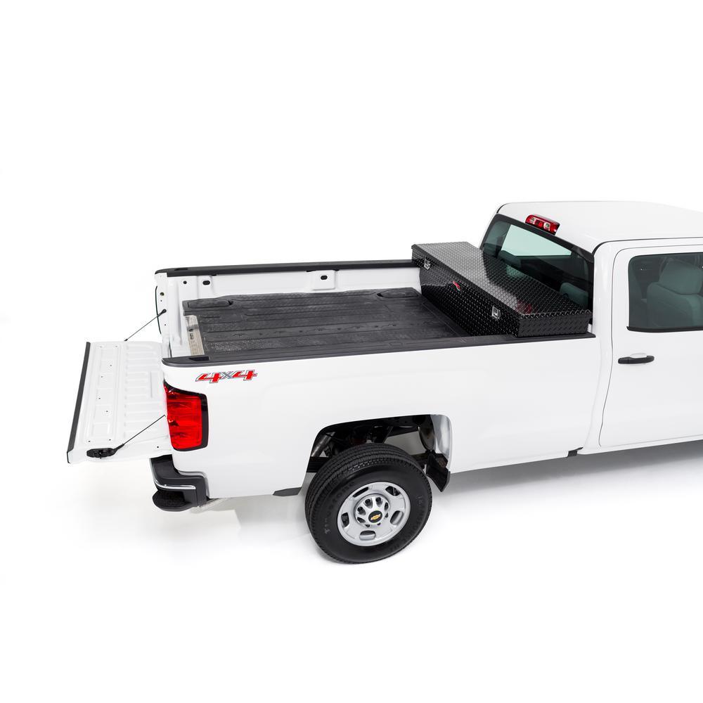 - SKUs are standard box DECKED systems engineered to be installed in trucks with 8 ft. beds, these are not 8 ft. L DECKED systems, with these SKUs, the DECKED system orients towards the tailgate, as a result, there is a gap from the cab side wall to the cab side edge of the DECKED system that allows room for a crossover tool box or fuel transfer tank