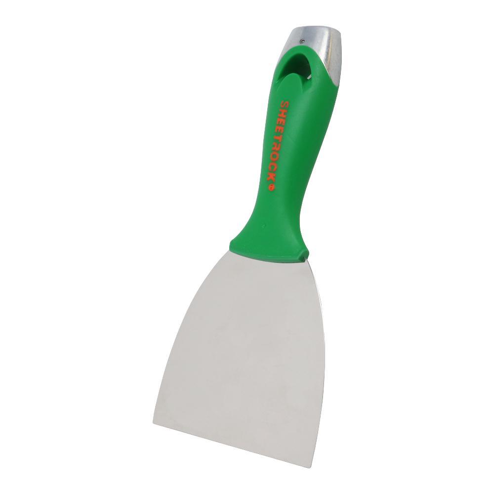 Sheetrock Tools Stainless Steel Professional Finishing Knives have stainless steel blades for those who prefer it's rust resistant properties. The knife's tapered neck and soft grip provide maximum comfort. The premium handle is also engineered with an enlarged hammer for striking and writing, reducing the need to carry additional tools on the job.