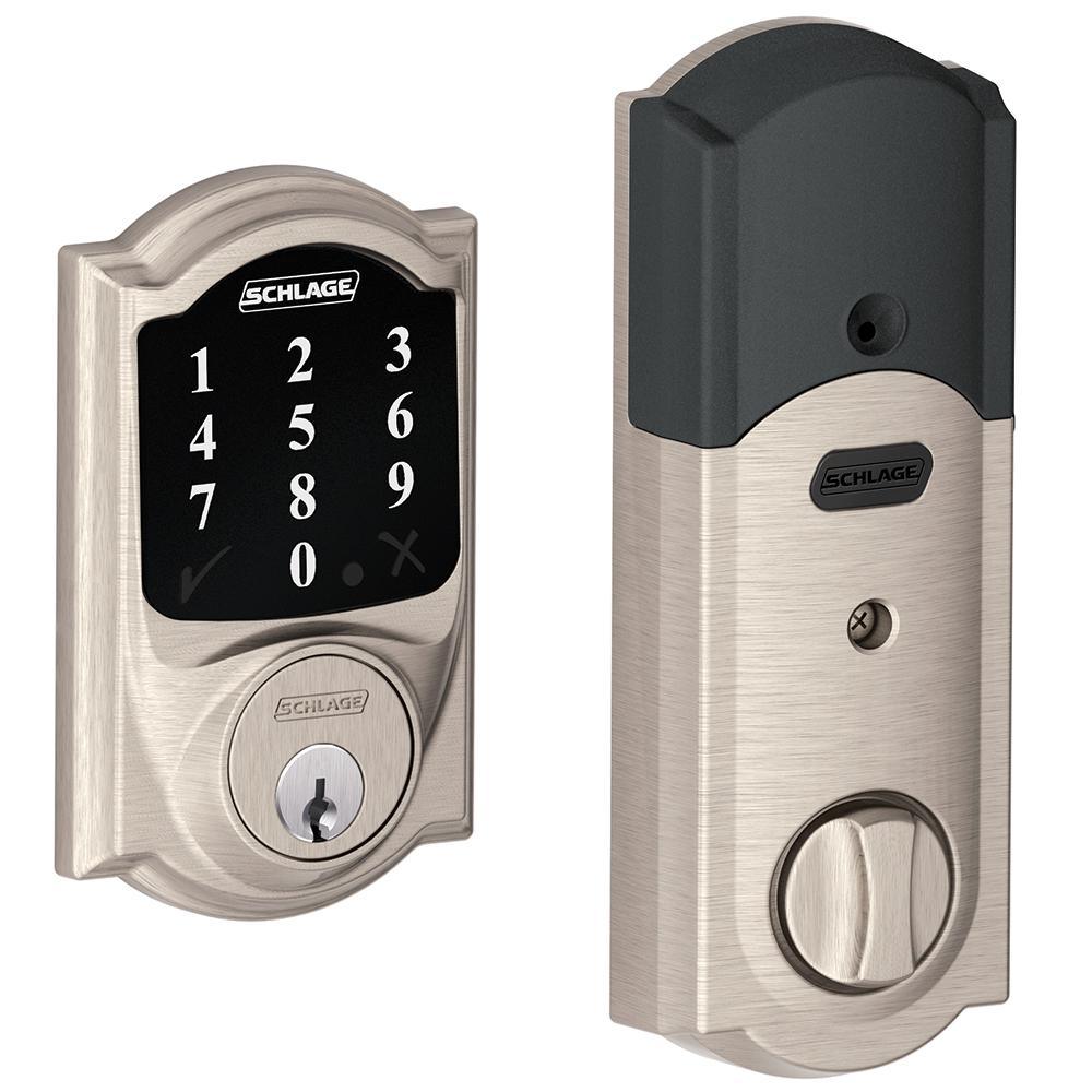 The Schlage Camelot Bright Brass Connect Smart Lock connects with Z-Wave to combine advanced features and compatibility with your home automation system, allowing you to control your home from anywhere and freeing you from the hassles of keys. The sleek touchscreen features white numbers which are clearly visible all day long - even in bright daylight. With the charming, scalloped details of the Camelot trim, the lock pairs well with interior Schlage hardware and looks especially classic when finished in Bright Brass. Plus, it's been designed and tested with strength and durability in mind and comes with a 3-year limited lifetime warranty, the best in the industry. See product warranty for full details.