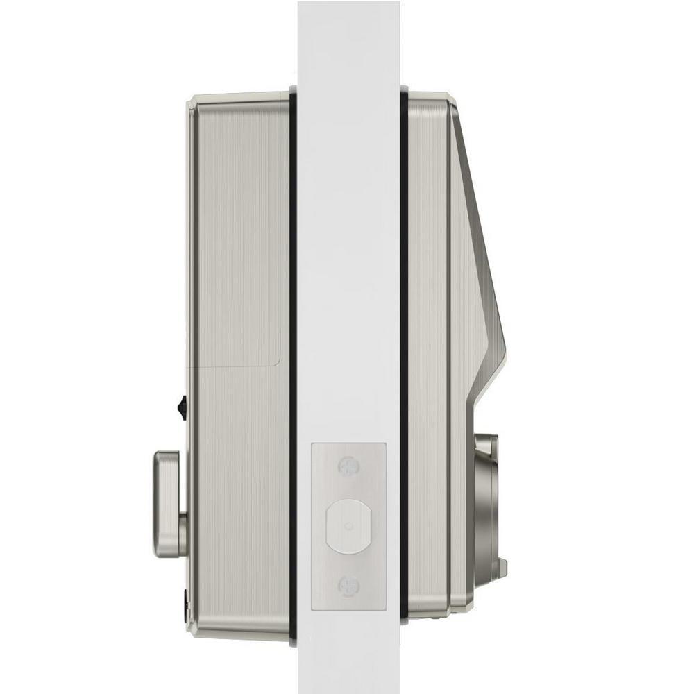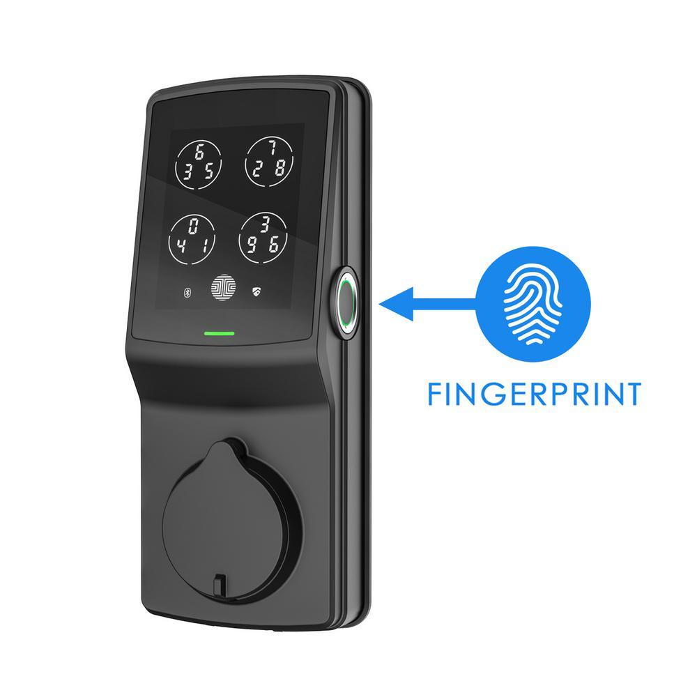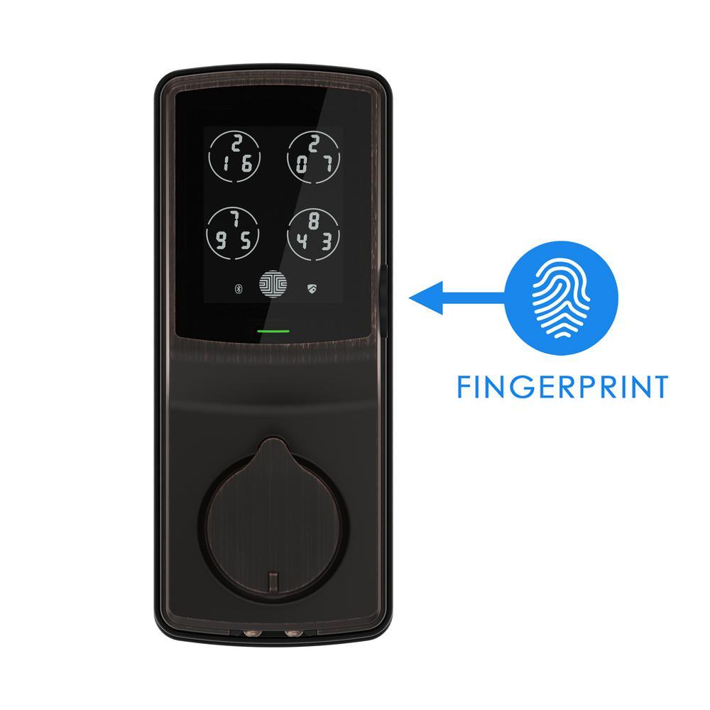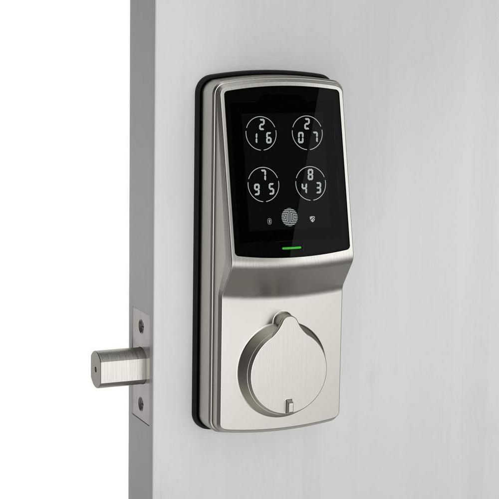 Stop intruders at the door with the Lockly Secure Plus Smart Lock, the world's most advanced smart lock. The PIN Genie, the patented digital keypad, always displays a shuffling keypad. The numbers are displayed in a series of 4 buttons and different every time you approach the door. The access code remains the same, but the location of the numbers changes, making it hard for someone to guess what the code is. The lock can also grant remote access and issue digital keys with specific timed durations, allowing guests to enter without using a smartphone. The advanced embedded 3D fingerprint sensor stores up to 99 fingerprints and only recognizes the original fingers scanned, making copied and lifted fingerprints useless. You can manage and view access history with your smartphone anytime with the Lockly iOS and Android app.