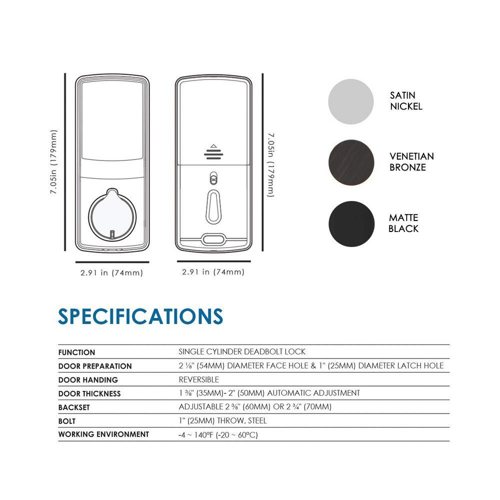 Automatic Relocking,Backlit,Bluetooth Technology,Concealed Screws,Delay Timer,Easy Installation,Indicator Light(s),LED Backlight,Low Battery Indicator Light |