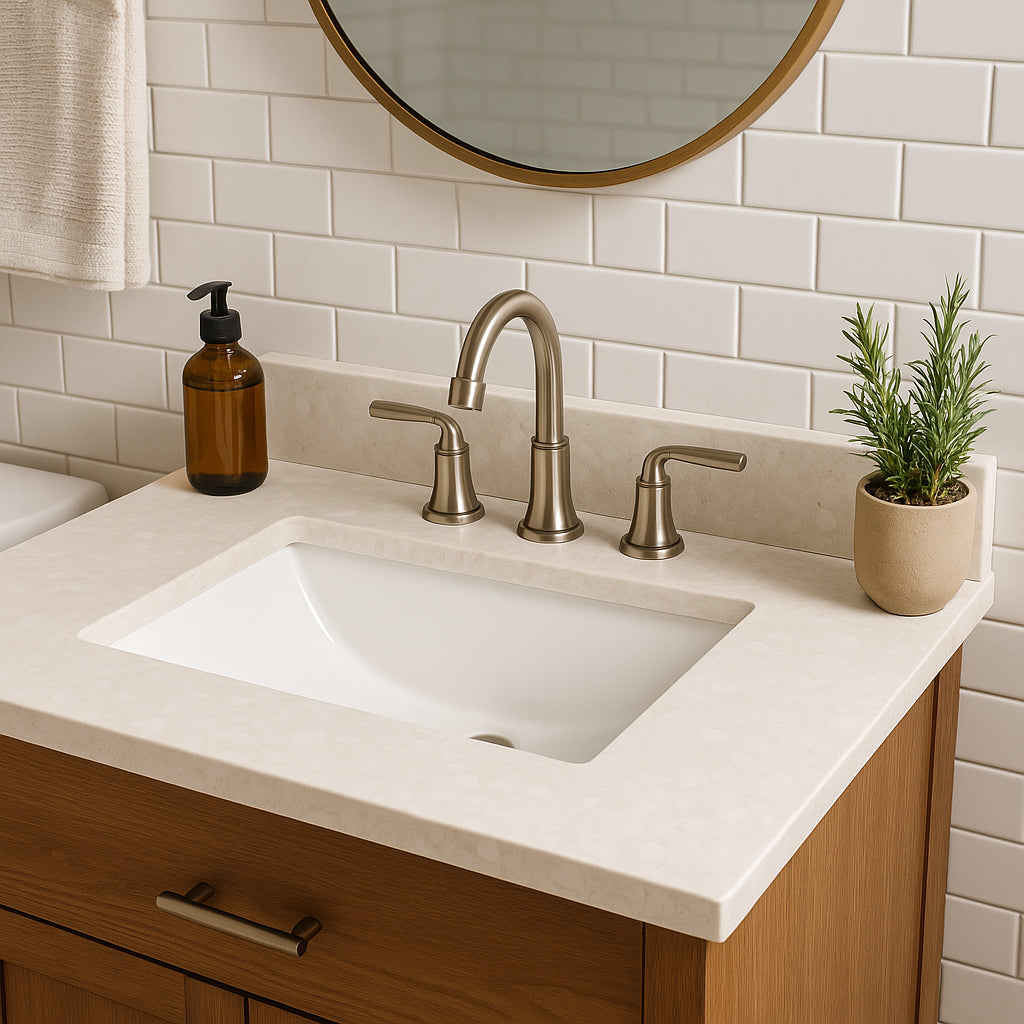 - Durable Engineered Stone Composite: Provides a sturdy and elegant surface for your bathroom vanity.