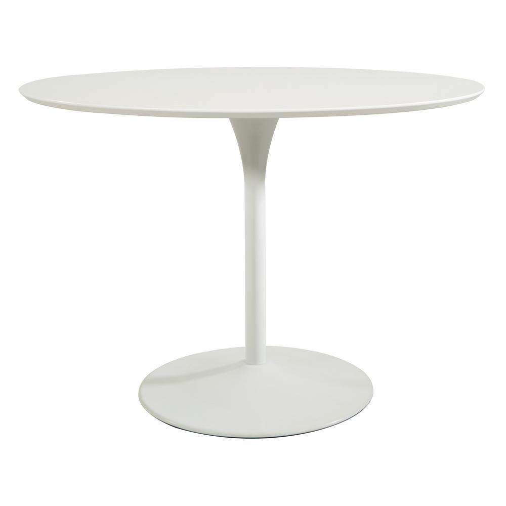 Perfectly sized, this modern round dining table. The possibilities are endless with the exceptional beauty of the Flower Dining Table from OSP Home Furnishings. This stylish top finish in matte white is paired with a weighted metal base for stability.