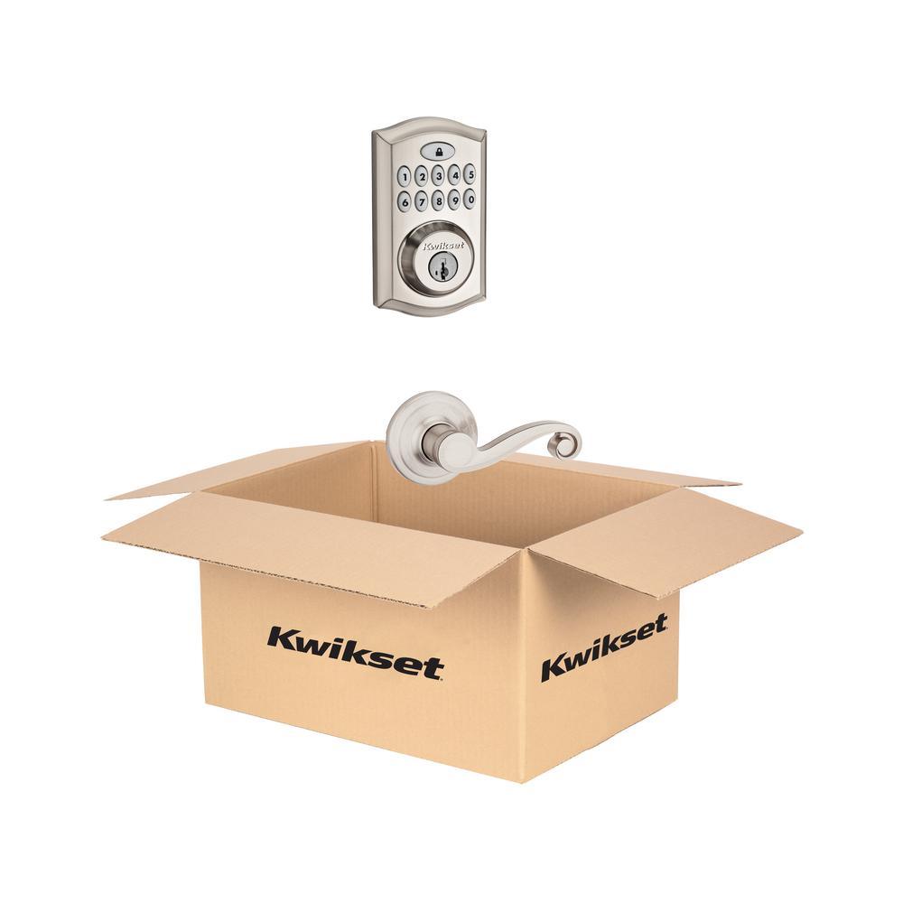 SmartCode Satin Nickel Single Cylinder Electronic Deadbolt featuring SmartKey Security and Lido Hall/Closet Lever