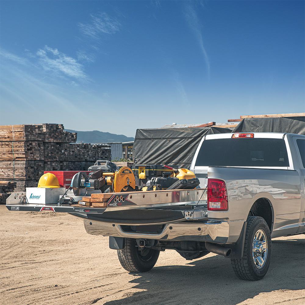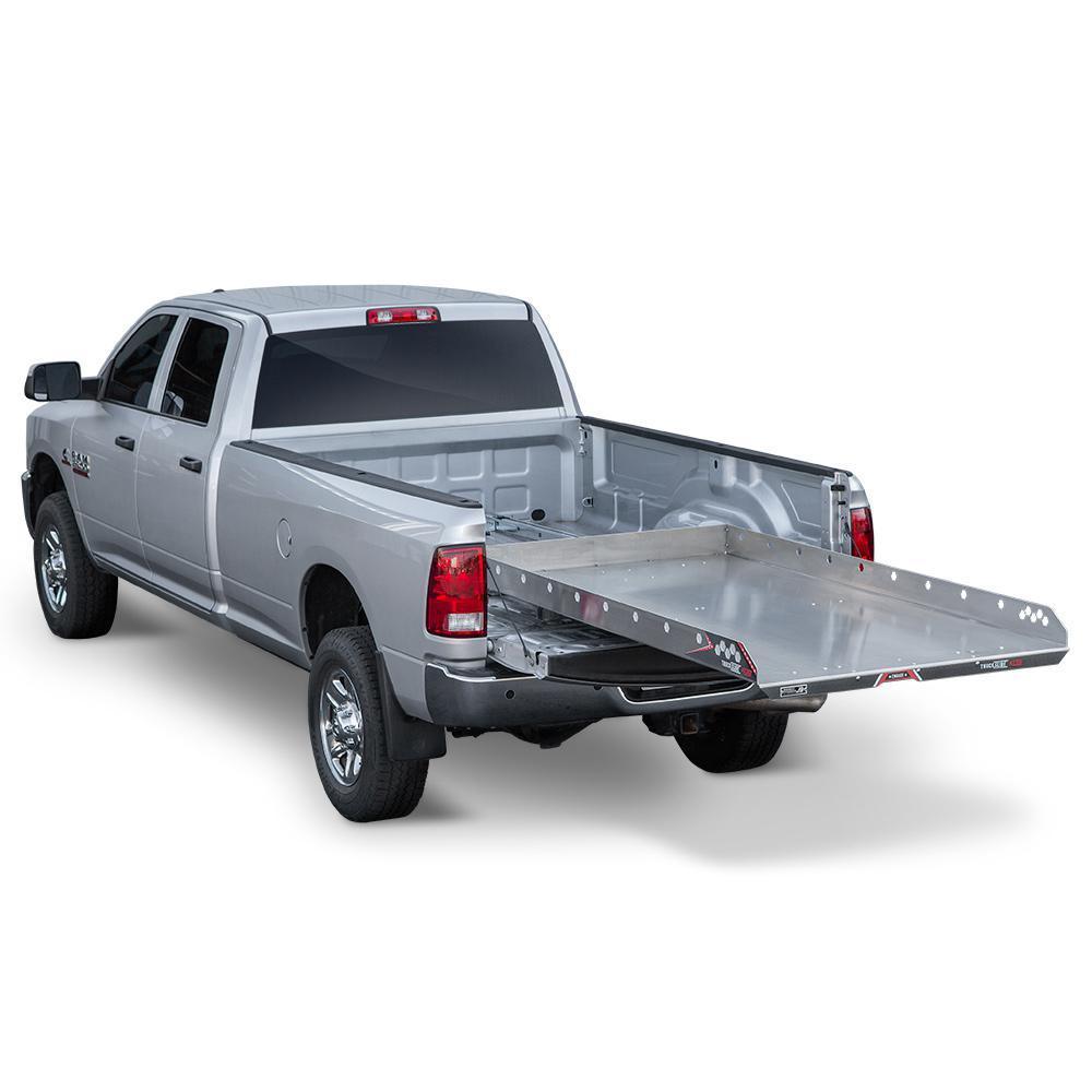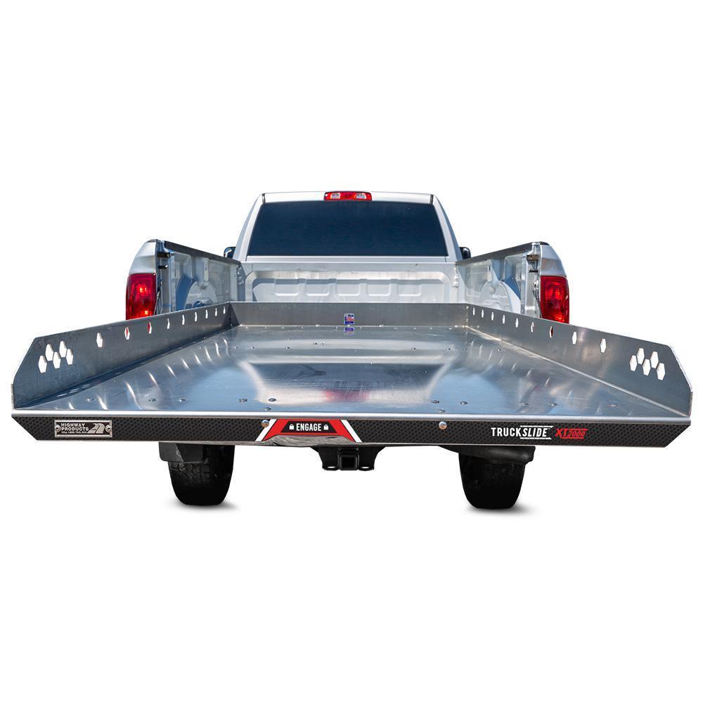 The HIGHWAY PRODUCTS XT-2000 Truck Slide is built Work Truck Tough for rugged work conditions and is compatible with Chevy, Ford, Dodge RAM, Toyota and Nissan trucks. The XT2000 Truck Slide easily pulls out to allow quick access to all your job site materials, tools or even golf clubs, its especially convenient when access to your bed is limited by a canopy, tonneau cover or a HIGHWAY PRODUCTS Pick Up Pack. Injuries are the enemy of any job site. Climbing into your bed or lifting materials from awkward positions puts you and your team at risk. The Truck Slide XT-2000 makes it easy to roll out the contents of your bed, bringing it quickly in your reach. You'll stay organized, work efficiently and save your back. The XT-2000 is tested to handle up to 2,000 lbs. when extended. The tray is formed aluminum with no welds leaving no weak points to crack and can be used in any conditions without concern of deterioration. Quickly secure your cargo with punched tie-down points along the tray sides. The 10-Gauge galvanized steel rails with 2 in. sealed chrome steel bearings provide rugged durability and we've designed steel plunger rods that slam shut locking the slide in position every 10 in. to secure heavy loads when the pull handle is disengaged. The XT2000 Truck Slide is 1 option in our line of truck bed slides that are built to last forever using all-metal construction and are 100% guaranteed by our Transferable Lifetime Warranty.