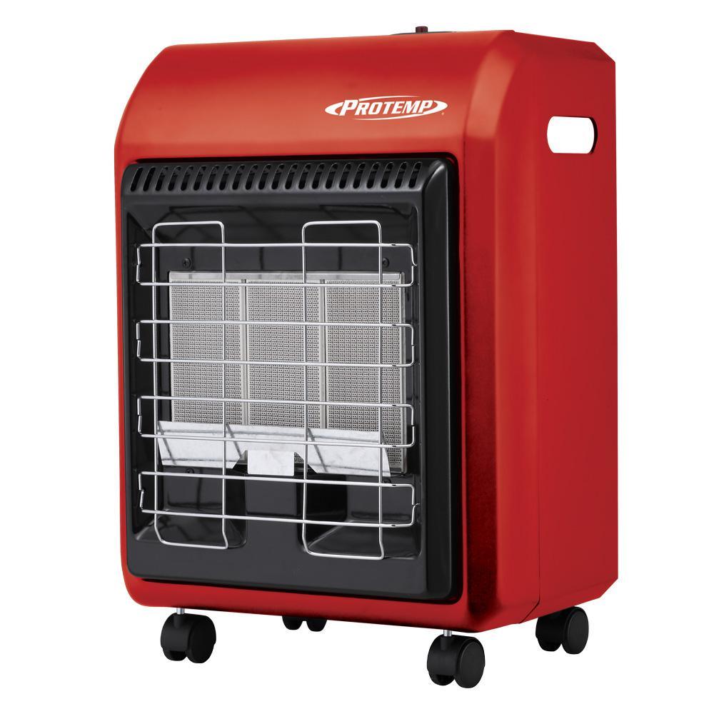 Get reliable and clean, instant, radiant heat from the ProTemp portable cabinet propane heater. It can warm up to 450 sq. ft. in your workshop, garage, or outdoor space thanks to its 6,000 to 18,000 BTUs and three heat settings. You can adjust the heat intensity easily with the control knob without the need for electricity. With a safety tip-over switch, built-in oxygen depletion sensor, and other safety features, this durable steel construction heater ensures safe operation. Plus, its 4 rolling casters with rear locking make it easy to move around. LP hose and regulator are included for added convenience. Trust the experts and choose ProTemp for all your heating needs.