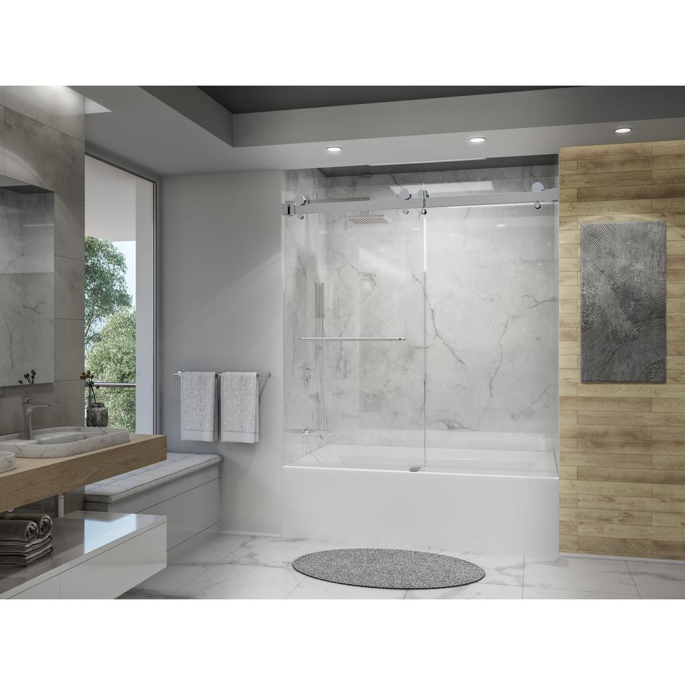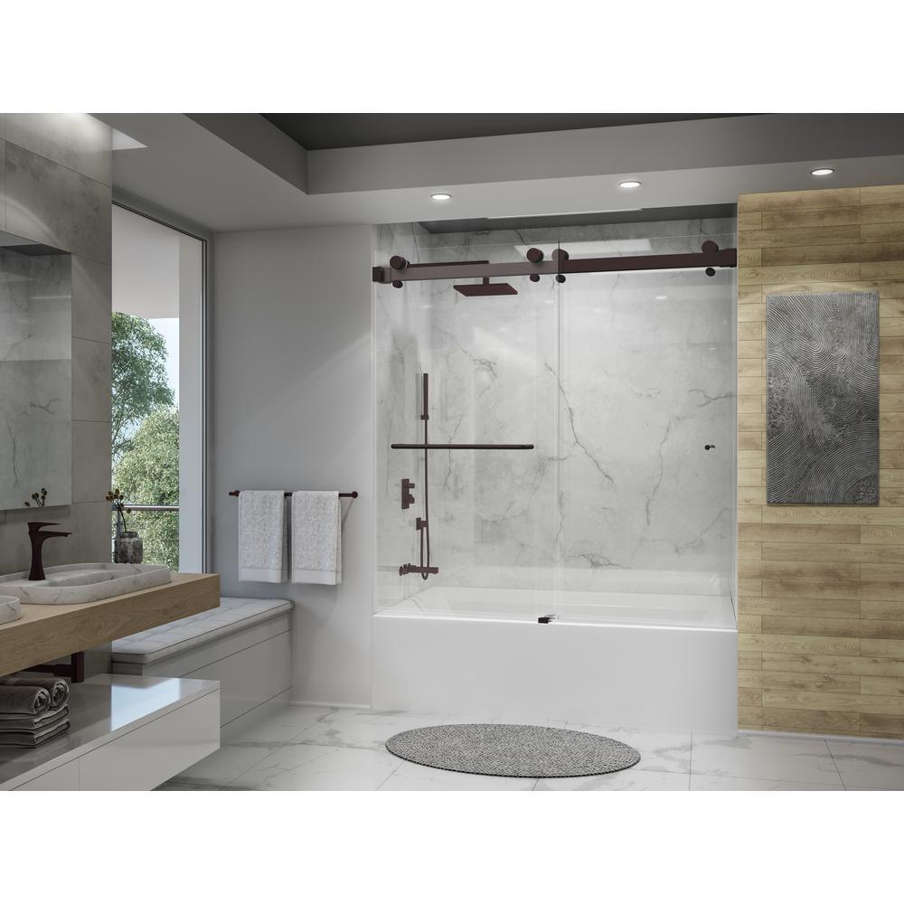 Luna 58 in. - 60 in. W x 60-1/2 in. H Frameless Bypassing Sliding Tub Door in Matte Black