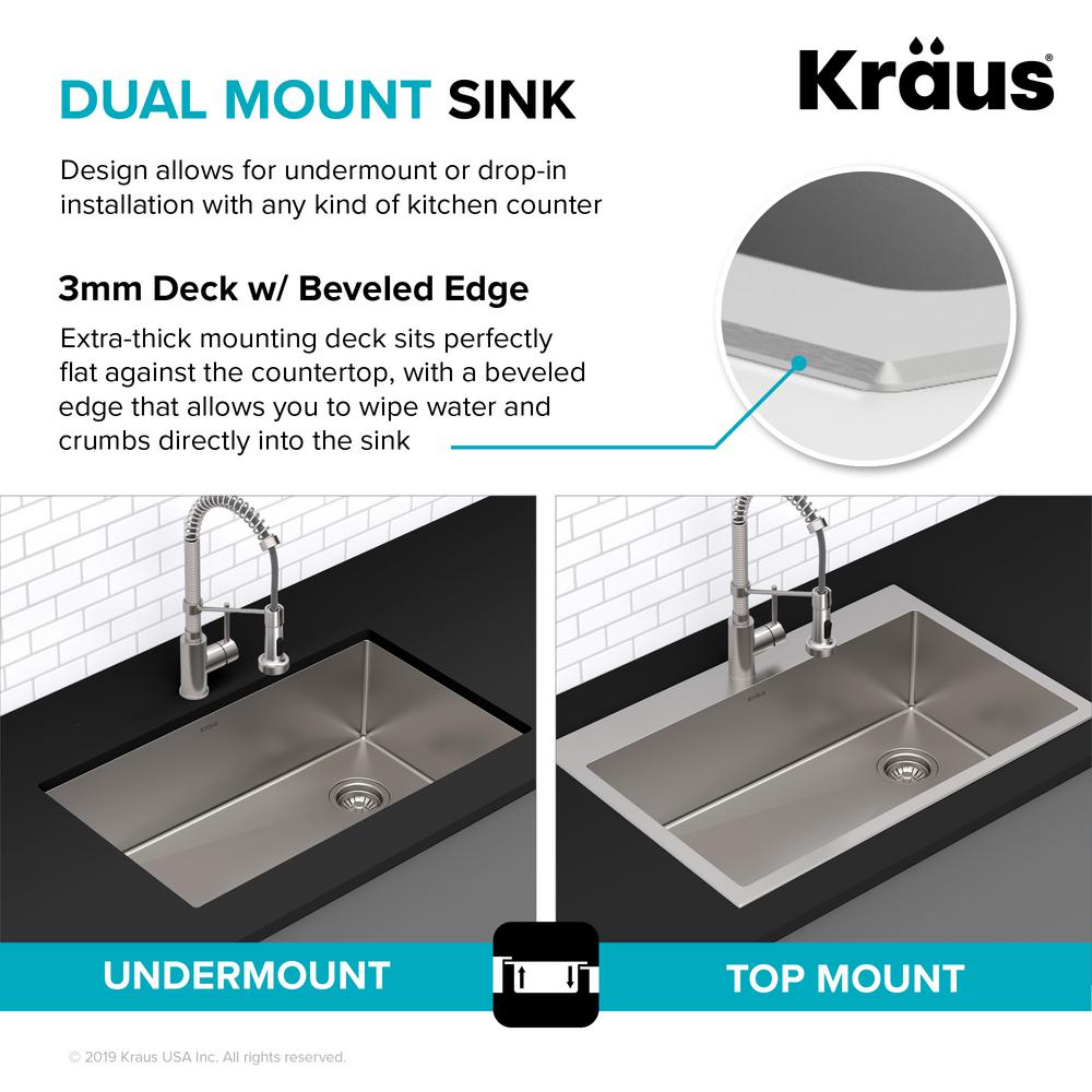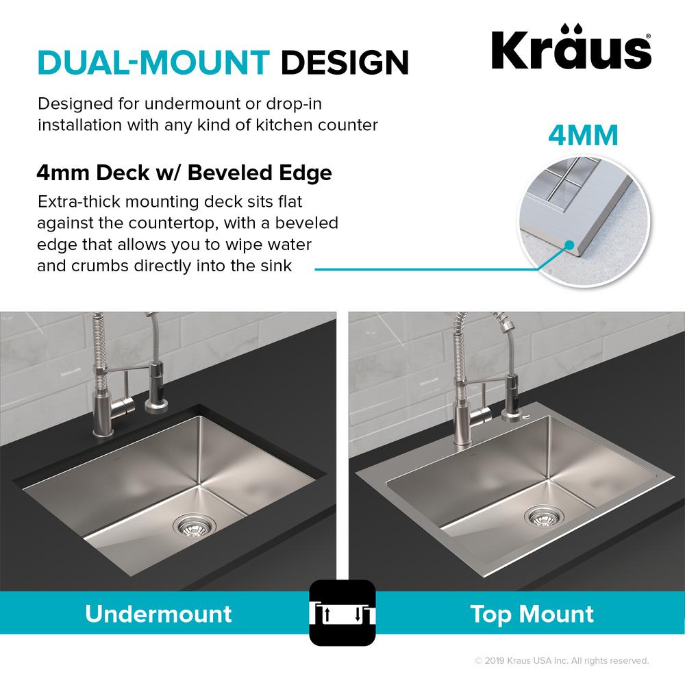 • Dual mount design allows for undermount or drop-in installation with any kitchen counter