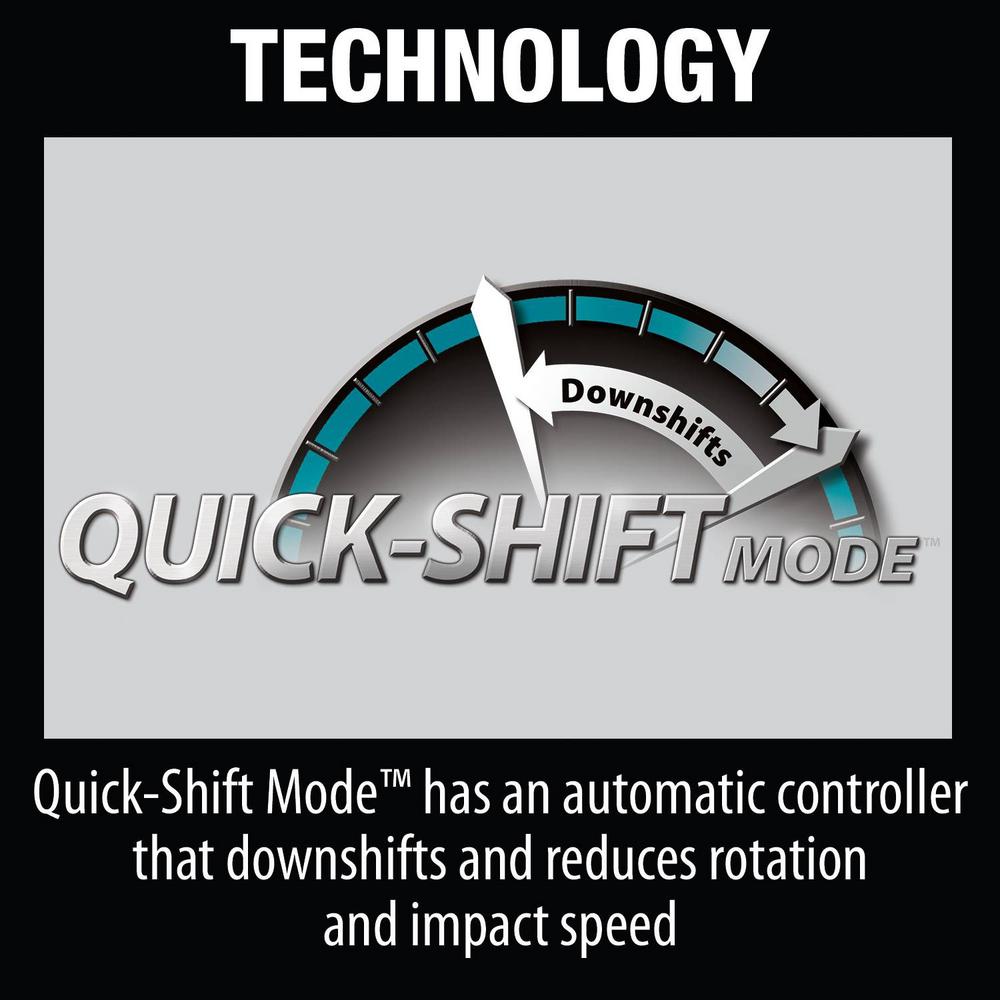 Quick-shift mode selector has an automatic electronic controller that downshifts and reduces rotation and impact speed prior to driving screw into place and is engineered to minimize screw thread stripping, screw breakage and damage to work