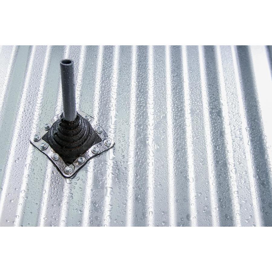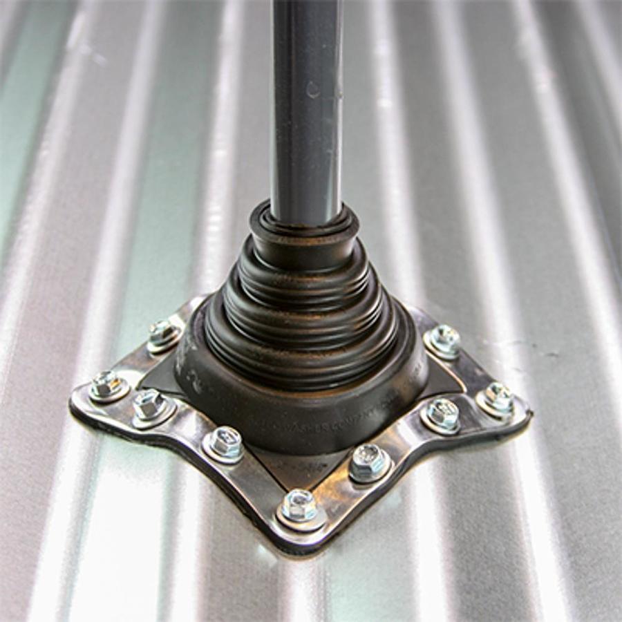 The 8-in x 8-in soft aluminum base is engineered for profiled metal roofing systems at any pitch Made of non-fading EPDM rubber for higher resistance to ultraviolet light and extreme temperatures with up to 212 degrees (F) of continuous heat Easily customized to accommodate a broad range of vent pipe diameters from 1/4-in up to 4-in diameter Use silicone sealant between base and surface, and secure with sheet metal screws Approved for Type B Installations The Oatey Master Flash® roof flashings carry a 20 year limited warranty