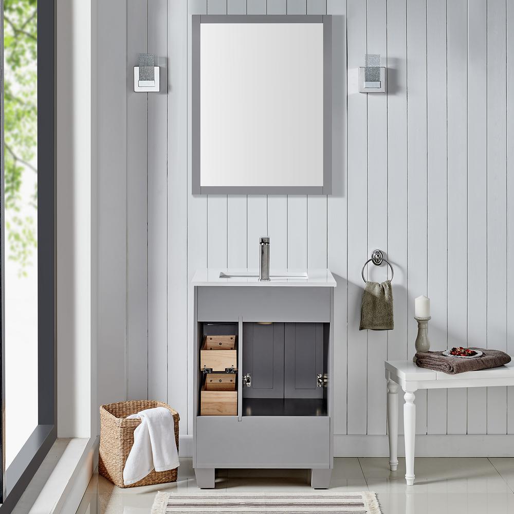 Eviva Acclaim 24 in. Gray Transitional Bathroom Vanity with White Quartz Top
