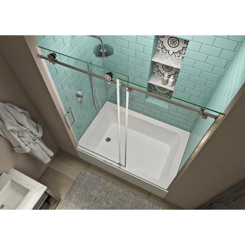 The 60" x 70" Aston Coraline Frameless Sliding Tub Collection shifts the trend of boring bathtub doors with its beautiful aesthetic and high-quality design work. Constructed of tempered, thick 3/8" (10mm) ANSI Z97.1 clear glass with professionally applied water-repellant, hygienic and stain resistant StarCast coating, the Coraline Frameless Sliding Tub Door is offered in your choice of desirable hardware finishes on stainless steel, double-sided vertical door handle providing effortless entry and exit, and up to a 1" out of plumb adjustability, ensuring a water tight perfect fit. Reinvent your bath instantly with the Coraline.