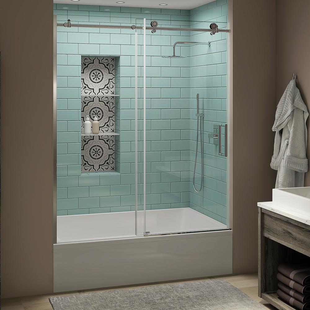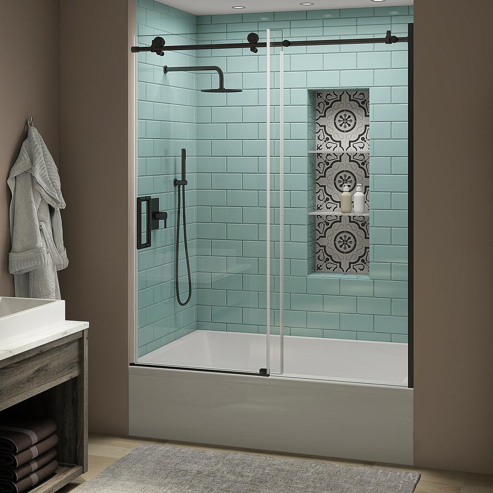 • 56 in. - 60 in. W x 70 in. H frameless sliding tub door
