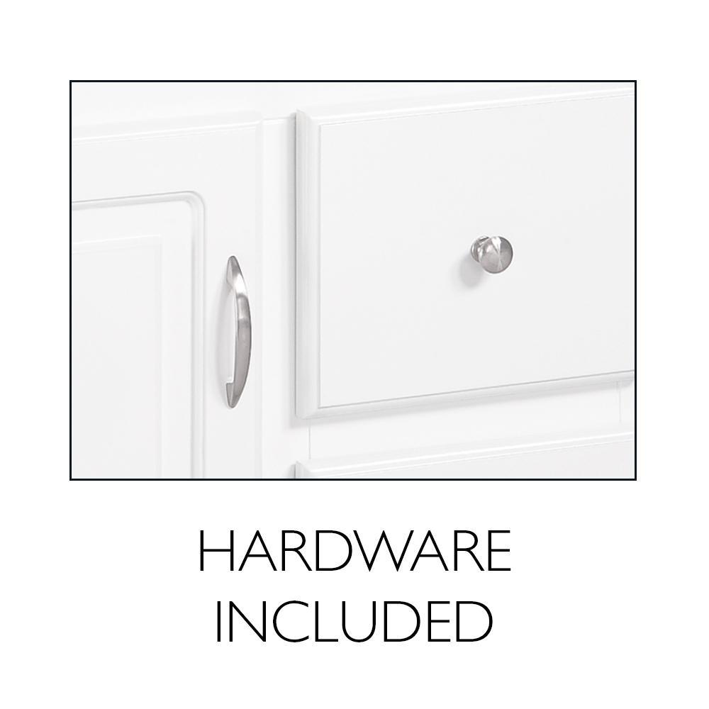 • Satin nickel hardware adds a stylish accent to the cabinet to match your existing bathroom hardware