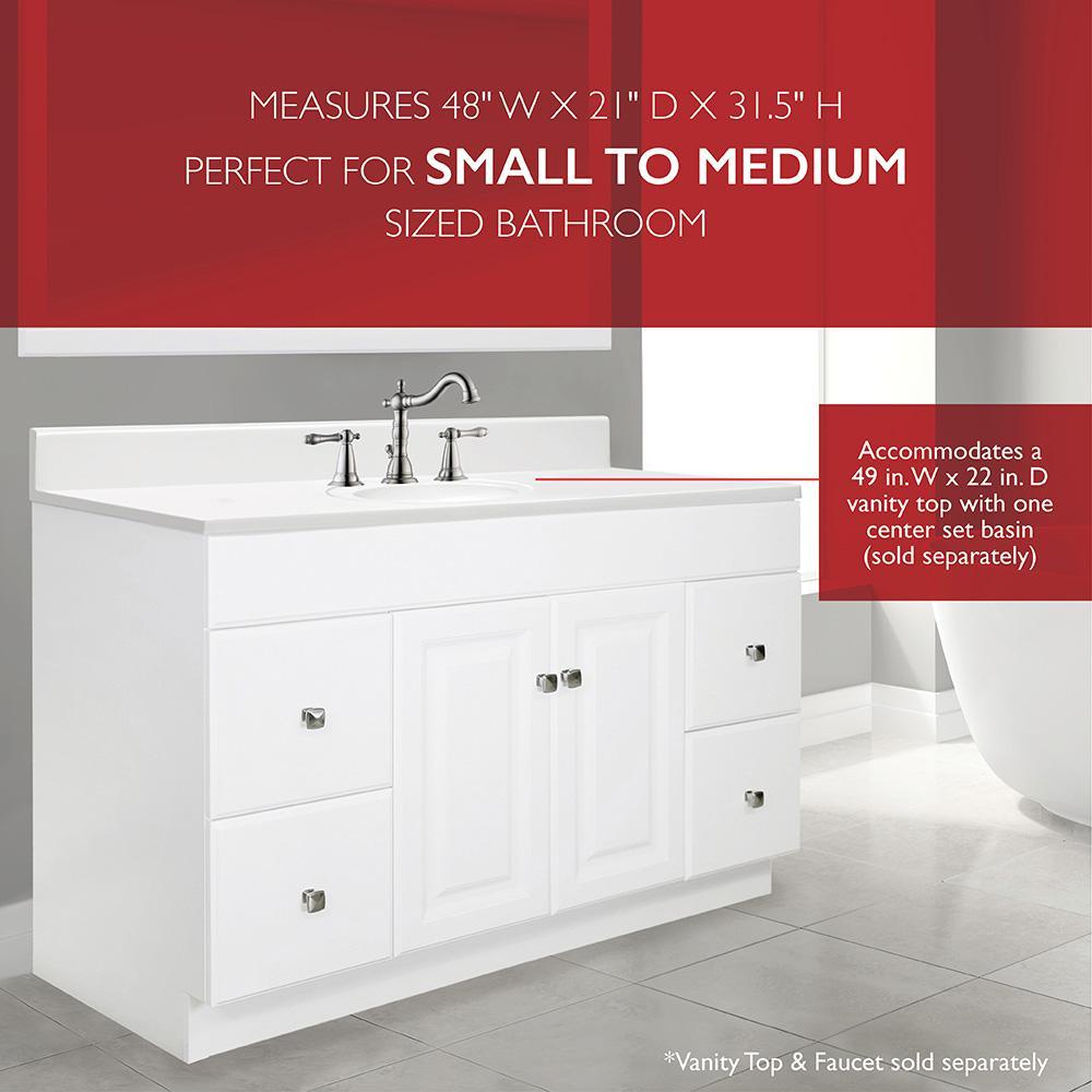 • Purchase vanity cabinet alone or with a matching wall or mirrored medicine cabinet from the same collection for a cohesive update to your powder room