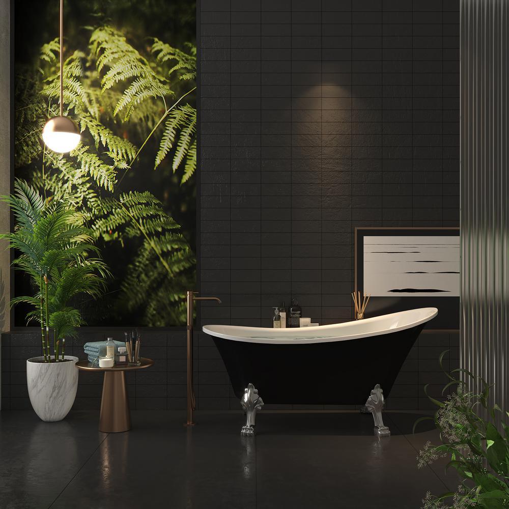 60 in. Fiberglass Single Slipper Clawfoot Non-Whirlpool Bathtub in Glossy Black