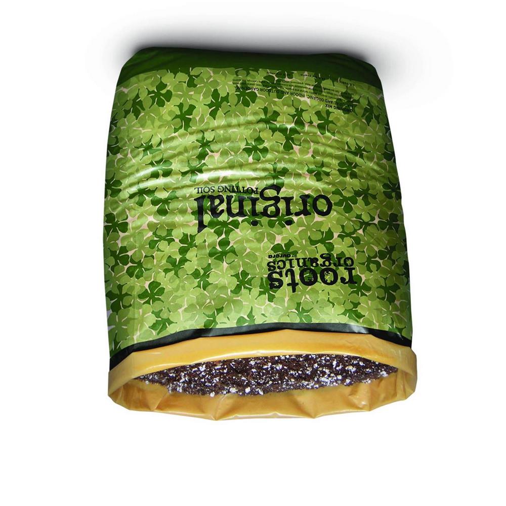 Recommended for use as a growing media. Great for plants but do not breathe in, spill on, or feed to people or pets. Please see the Safety Data Sheet for further details. A truly exceptional ready-to-use coco fiber-based Potting Soil. We begin with a base of the highest quality coco fiber/coir on the planet which is repeatedly washed for an incredibly low EC, and composted for over 24-months, and is specially blended with extra-long fibers. This soil is amended with only the highest quality organic ingredients including bat guano, premium earth worm castings, fish bone meal, feather meal, green sand, mycorrihzae, glacial rock dust, soybean meal, humic acid, and many more. The Roots Organics Potting Soil is already blended with correct proportions of perlite and pumice for excellent drainage and a vigorous root system, Roots Organics potting soil encourages healthier plants and better yields. Comes in a heavy-duty, ready-to-grow, 0.75 cu. ft. camouflage print bag, simply poke holes in the bottom, cut off the top, and plant.