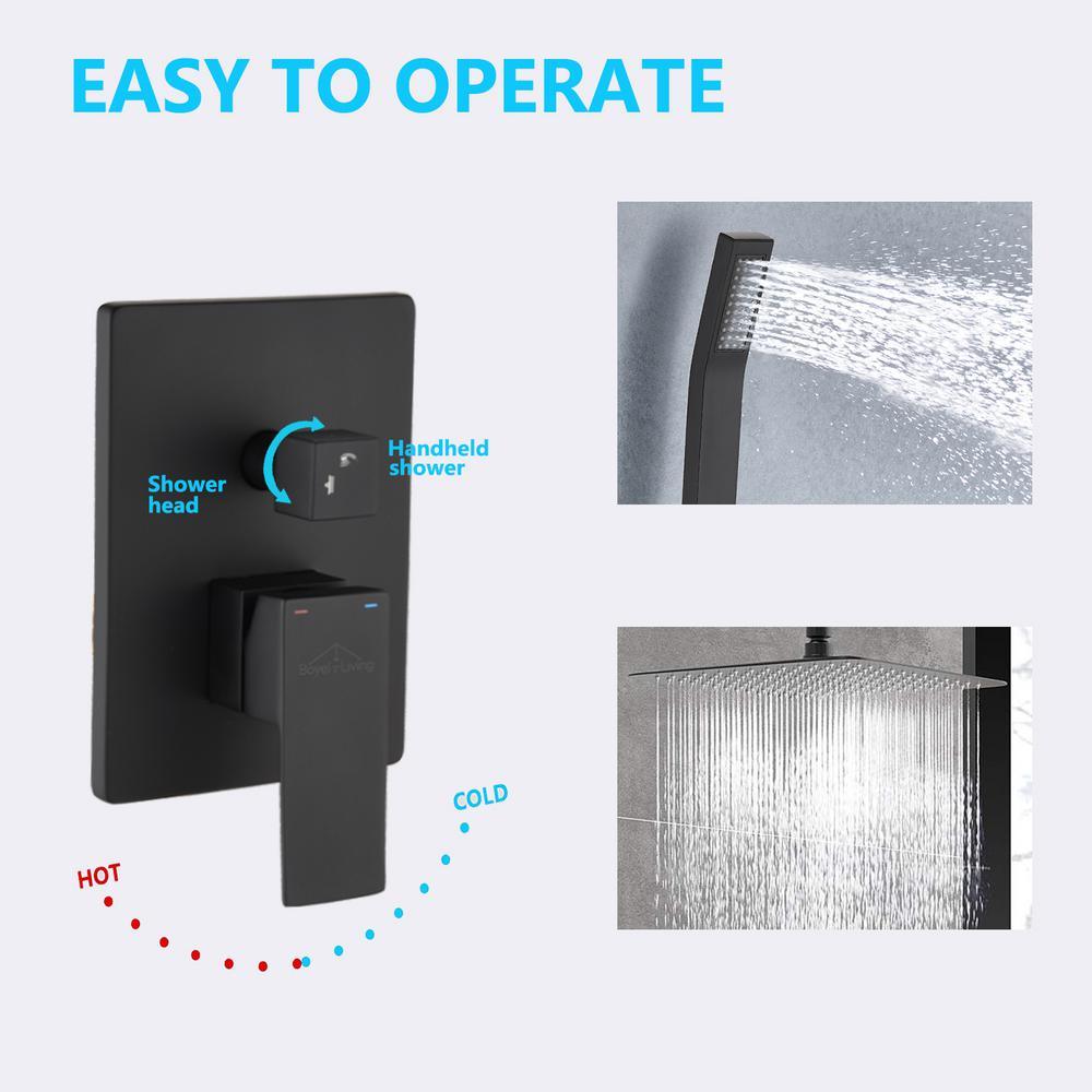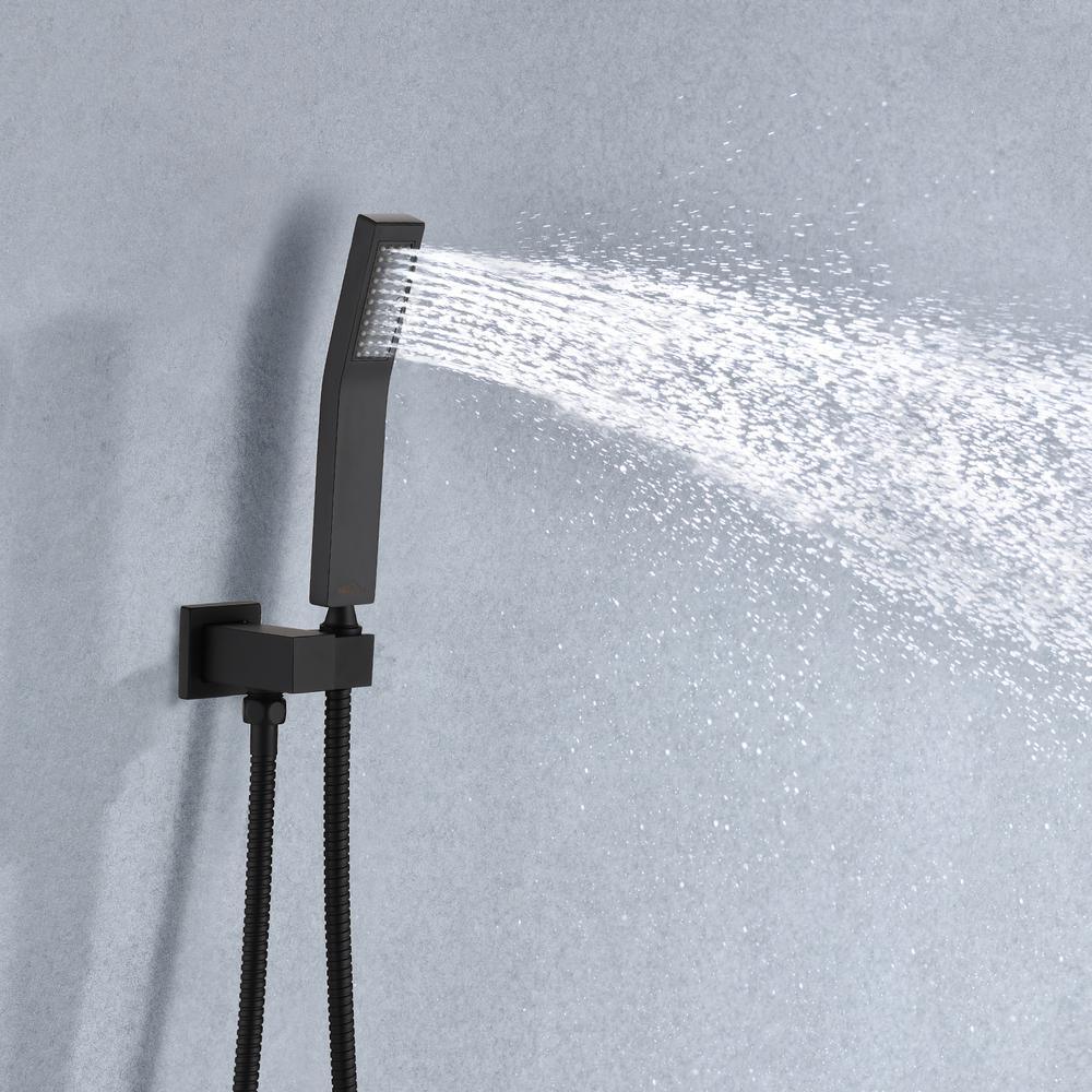 Shower System Ceiling Mounted with 12 in. Square Rainfall Shower head and Handheld Shower Head Set, Matte Black
