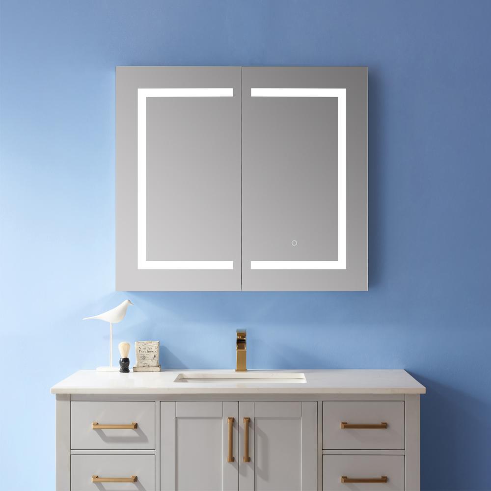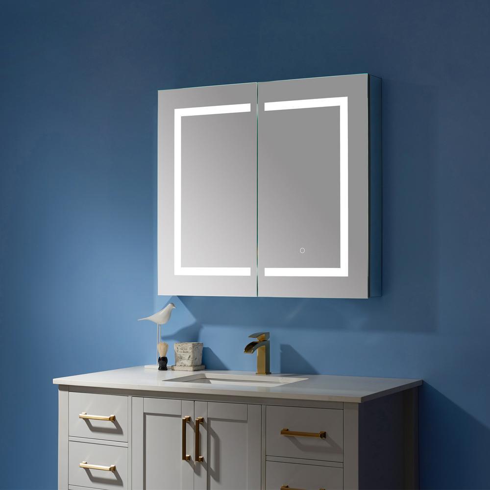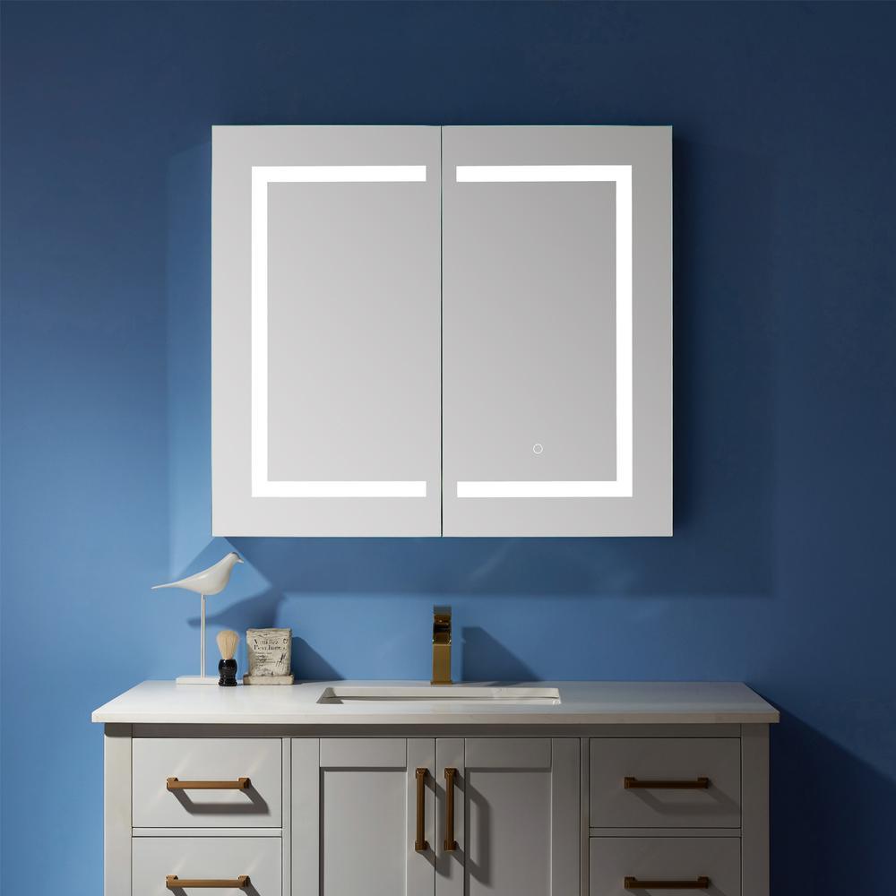 Sassari 36 in. W x 32 in. L Rectangular Surface-Mount LED Glass Surface Mount Medicine Cabinet with Mirror in Silver