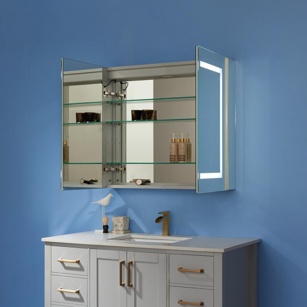 Looking for a mirror that's as beautiful as it is functional. The ROSWELL Sassari Vanity Mirror makes a stunning enhancement to any contemporary bathroom. You'll love the touch-sensor functionality of the LED lighting as well as the trio of roomy shelves concealed behind the mirrored panel.