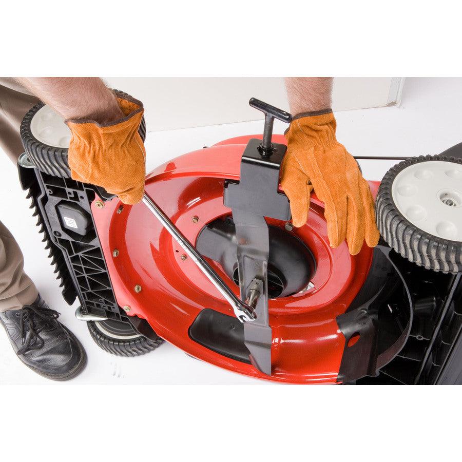 Holds mower blades in place for faster, safer removal Clamps around blade and deck Easy-turn clamp handle Rigid metal construction Great for walk-behind and riding mowers (up to 42-in decks)