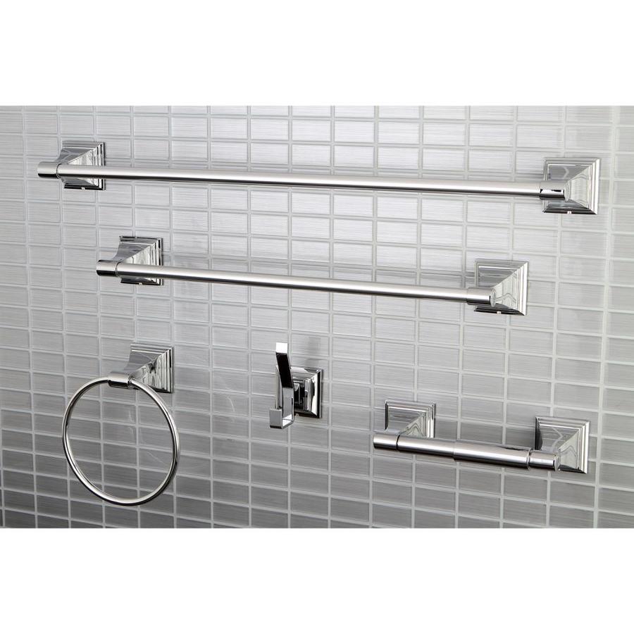 The Classic collection gives today’s functionality with yesterday’s elegance Constructed of metal for durability and a rich finish Set includes: 24 in. towel bar, 18 in. towel bar, towel ring, robe hook and toilet paper holder Concealed screws secure wall-mounted fixtures