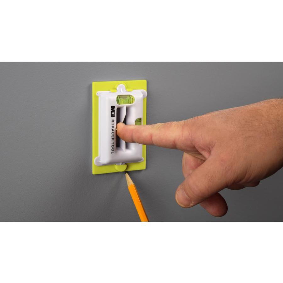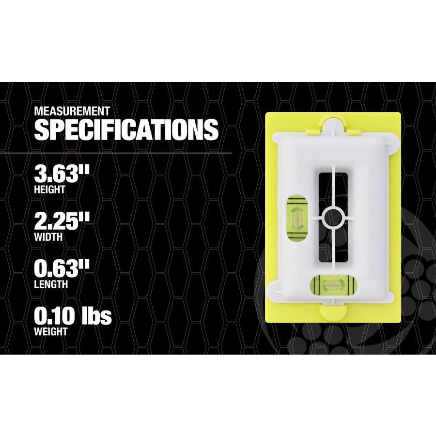 Saves time and labor Bull's eye accuracy Works vertically and horizontally Durable plastic with rubber backing