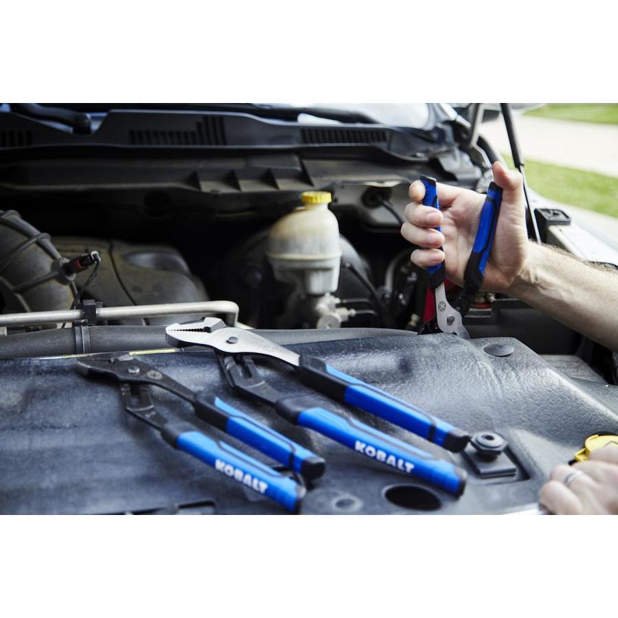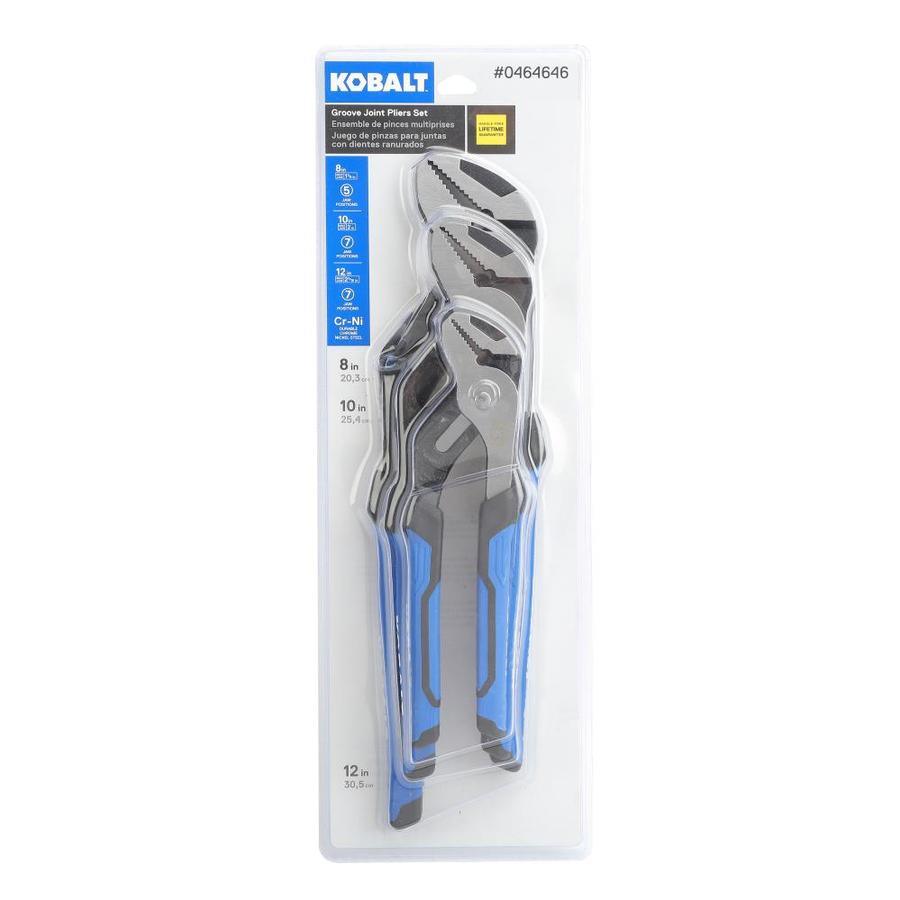 Kobalt 3-piece tool set features an 8-in, 10-in and 12-in groove joint pliers that are ideal for holding and turning nuts, bolts or pipes of different sizes Drop-forged chrome nickel steel design provides exceptional strength and longevity for frequent use Ergonomic molded anti-slip handles offer extended user comfort Micro-nickel finish provides corrosion resistance for added durability Lifetime warranty gives you peace of mind