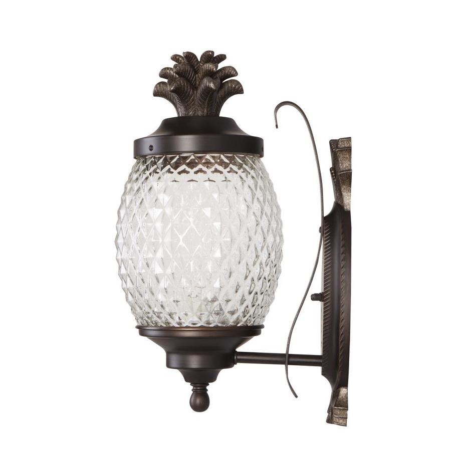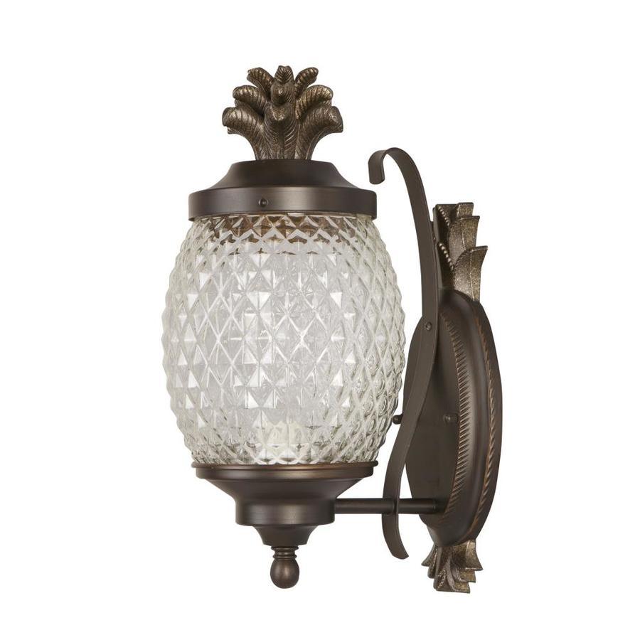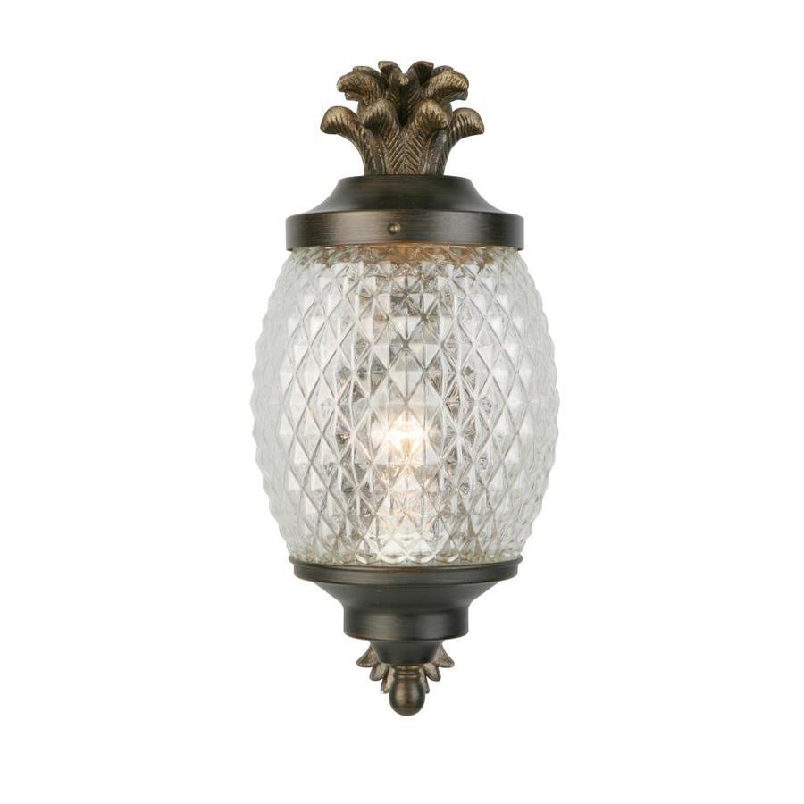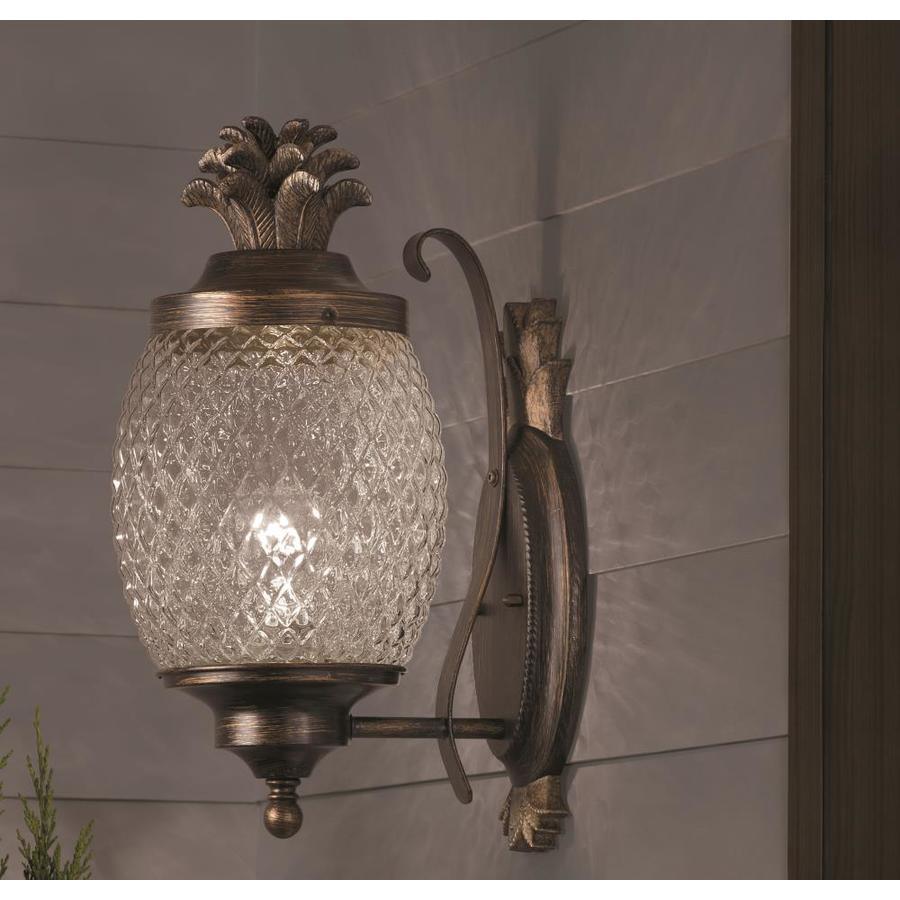 Brushed bronze finish outdoor wall light is weather-resistant and sturdy Clear cut glass shade allows for brightly illuminating and adds security One 60 W A19 medium base bulb required (not included) Workable for dimming circuits when using appropriate light bulbs with dimmable function. so you can create your desired ambiance Mounting hardware and instruction manual enclosed for easy installation 7-In W x 15.25-in H x 9.5-in D Pineapple design adds a tropical flair ETL safety listing demonstrates this product has met minimum requirements of widely accepted product safety standards Wet location rated, ideal for entranceway lighting