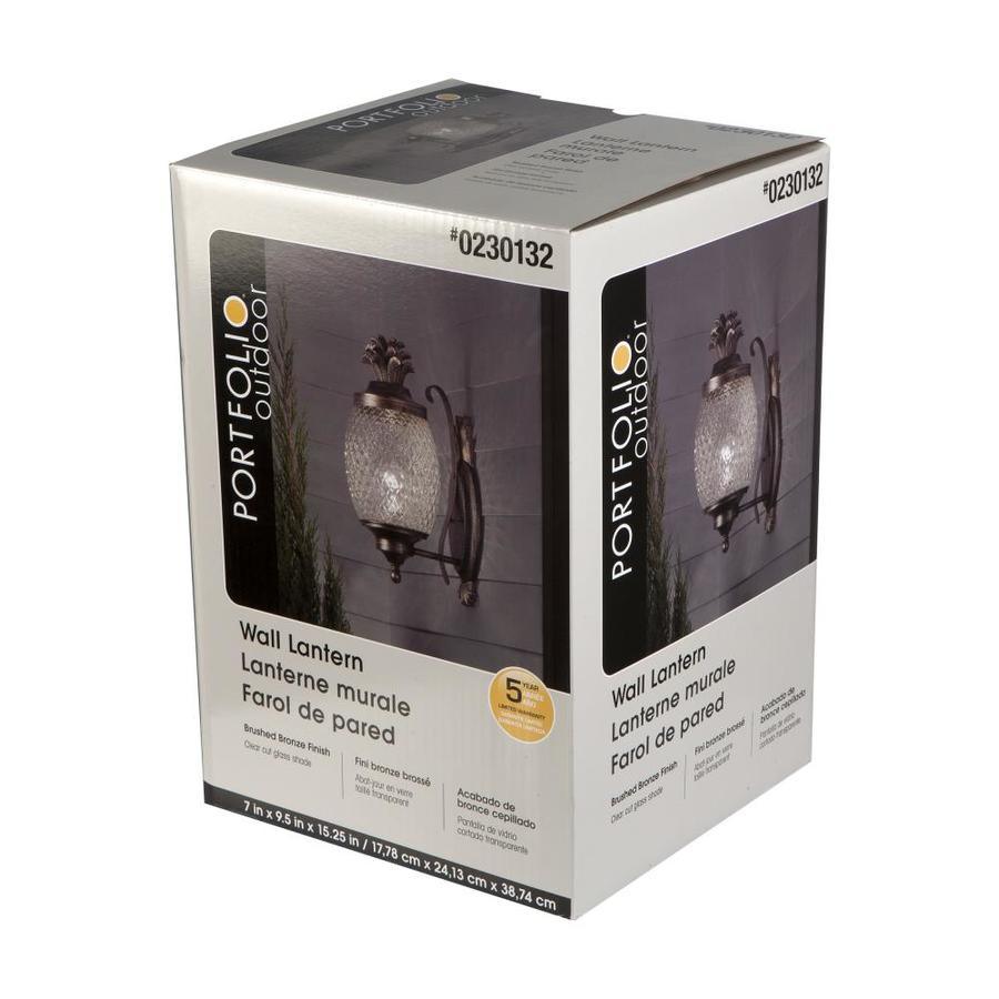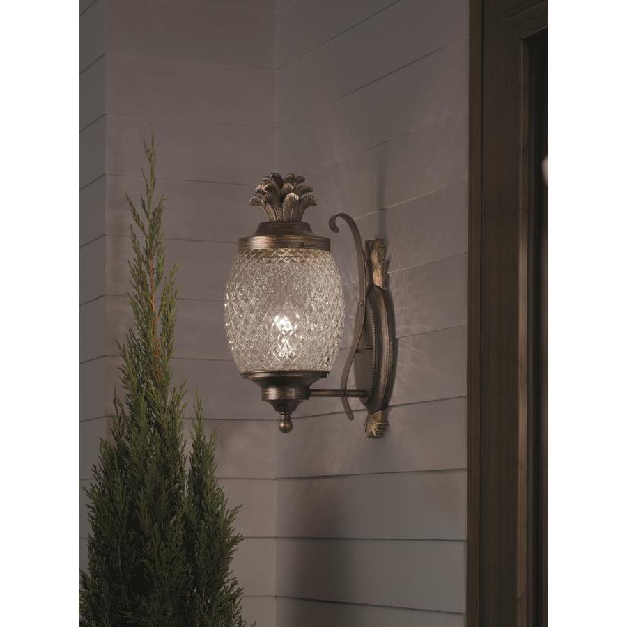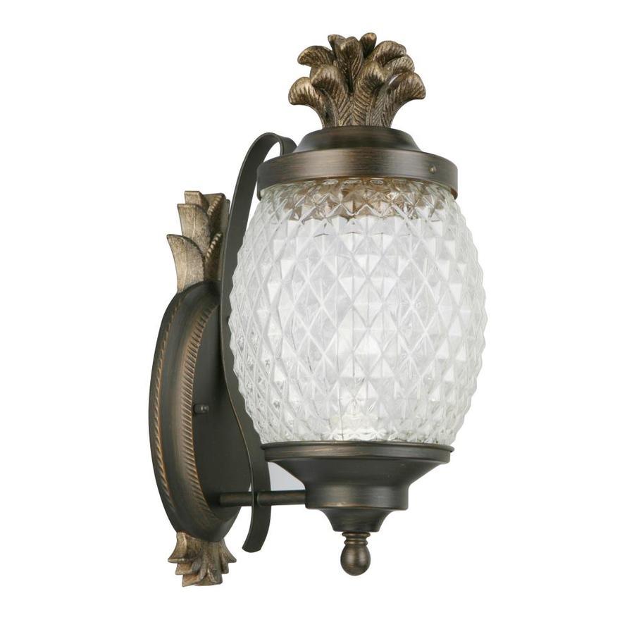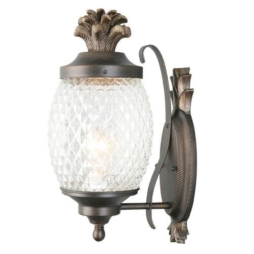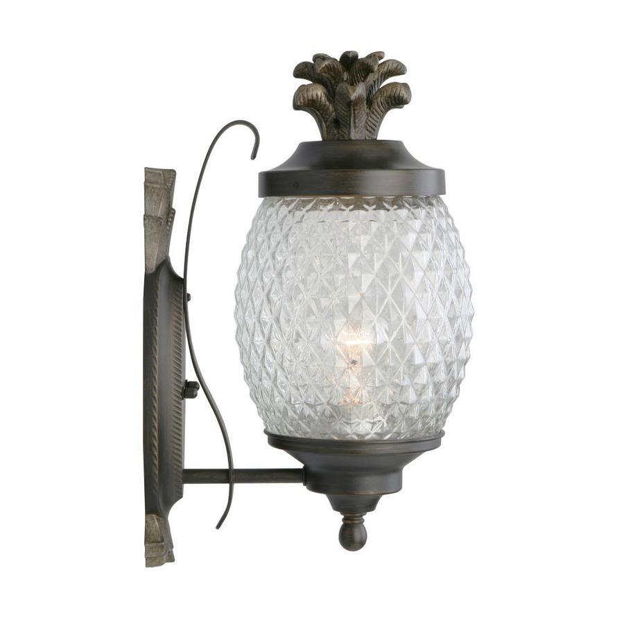 Brushed bronze finish outdoor wall light is weather-resistant and sturdy Clear cut glass shade allows for brightly illuminating and adds security One 60 W A19 medium base bulb required (not included) Workable for dimming circuits when using appropriate light bulbs with dimmable function. so you can create your desired ambiance Mounting hardware and instruction manual enclosed for easy installation 7-In W x 15.25-in H x 9.5-in D Pineapple design adds a tropical flair ETL safety listing demonstrates this product has met minimum requirements of widely accepted product safety standards Wet location rated, ideal for entranceway lighting