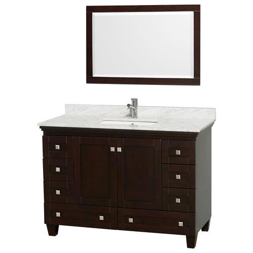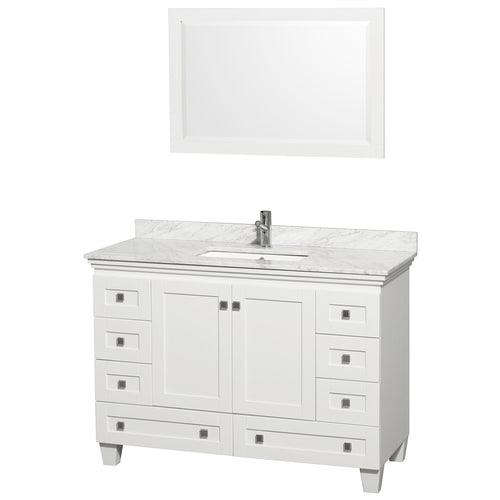 Wyndham Collection Acclaim 48-in White Single Sink Bathroom Vanity with White Carrera Natural Marble Top (Mirror Included)