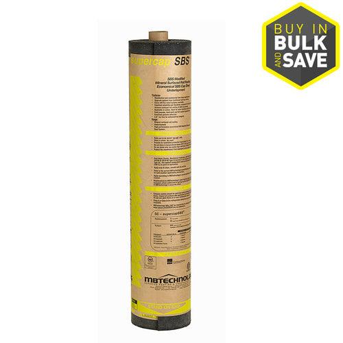 SBS (styrene-butane-styrene) modified asphalt mineral surfaced roll roofing membrane For residential and commercial low slope application Synthetic rubber gives asphalt enhanced performance characteristics and greater flexibility Exhibit high multi-directional strength and excellent cold temperature flexibility in addition to elongation Supercap SBS can be applied with hot mopping asphalt or cold process adhesive Upgrade system from traditional built-up roofing and non modified MSR rolls Excellent pliability and flexibility compared to traditional mineral surfaced roll roofing and bur cap sheets Excellent granule adhesion Rolls out flat for easy installation
