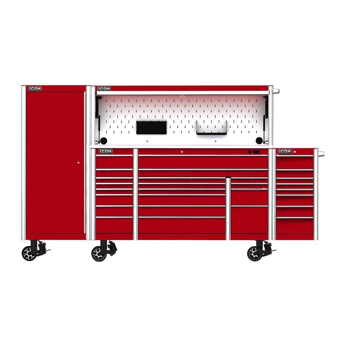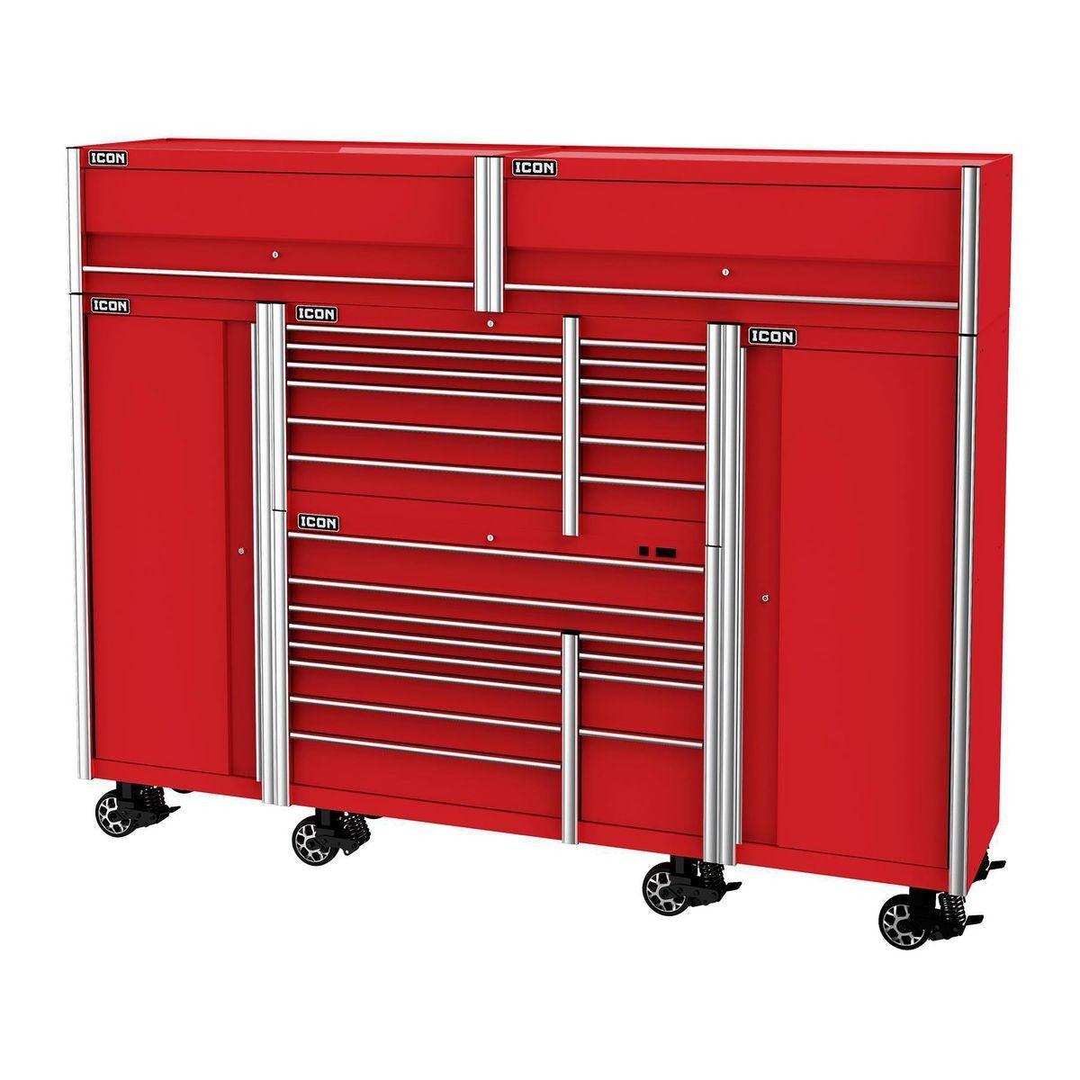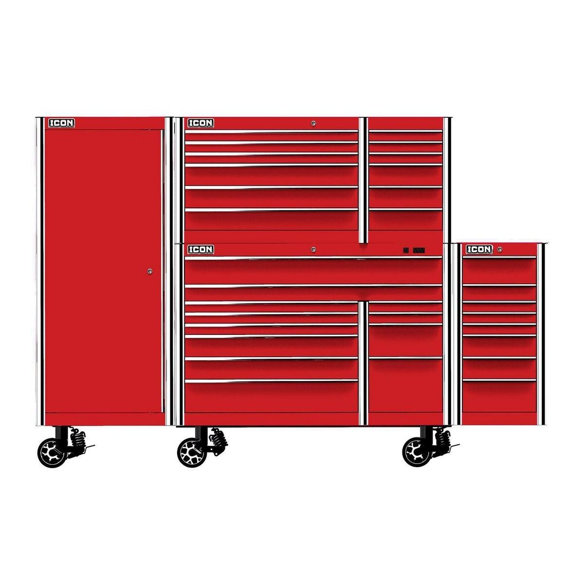 The Icon™ Professional 28 in. End Locker provides additional bulk storage, a modular shelf system and 4 adjustable drawers. The lockers feature rear access ports for running interior power and rear ventilation. With universal door hinges that open either left or right, they can be mounted to either side of a 56-inch or 73-inch cabinet. Lockers come with a screwdriver rack and two aerosol can holders. All Icon™ storage comes with free door-to-door delivery and a lifetime warranty - plus, a full line of replacement parts is available. It’s the only storage solution you’ll ever need.