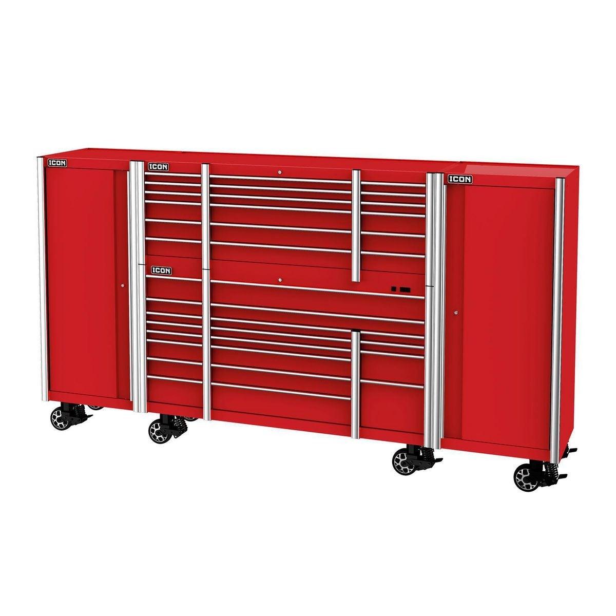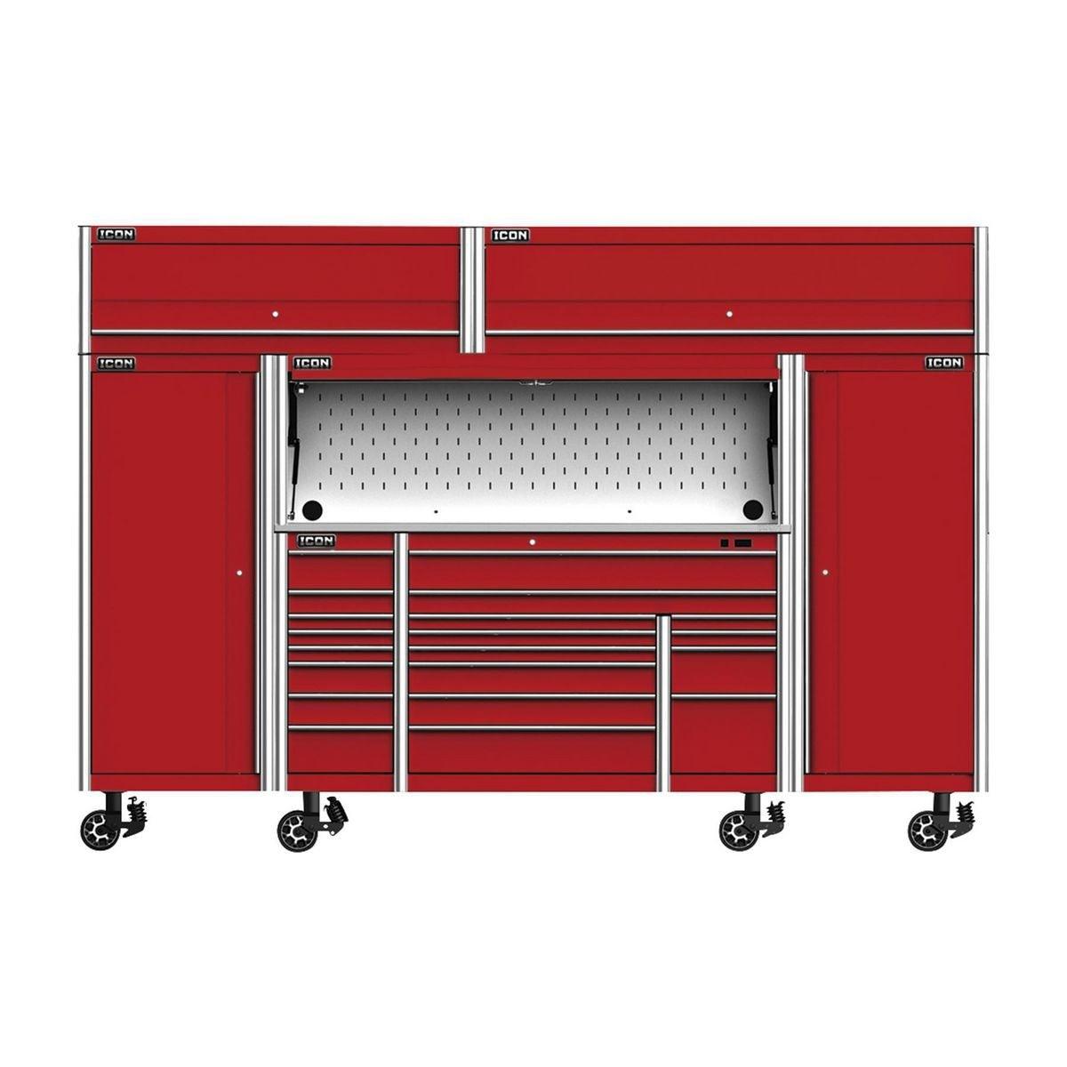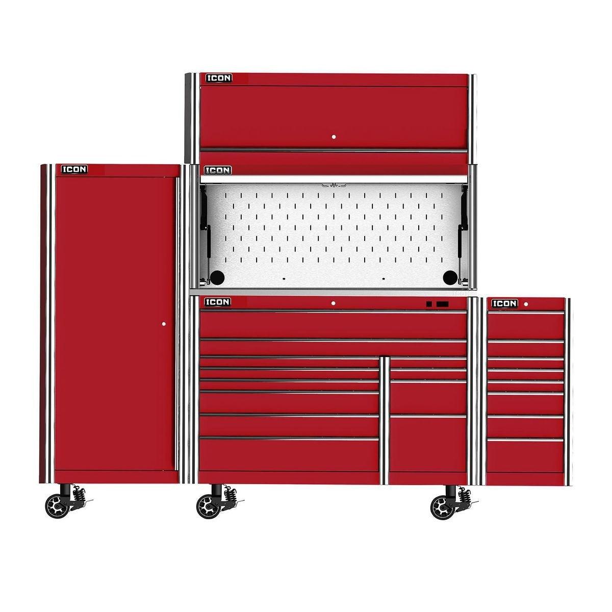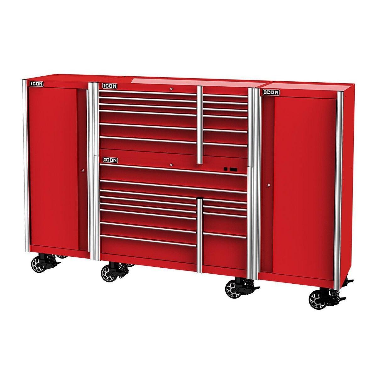 The Icon™ Professional 28 in. End Locker provides additional bulk storage, a modular shelf system and 4 adjustable drawers. The lockers feature rear access ports for running interior power and rear ventilation. With universal door hinges that open either left or right, they can be mounted to either side of a 56-inch or 73-inch cabinet. Lockers come with a screwdriver rack and two aerosol can holders. All Icon™ storage comes with free door-to-door delivery and a lifetime warranty - plus, a full line of replacement parts is available. It’s the only storage solution you’ll ever need.