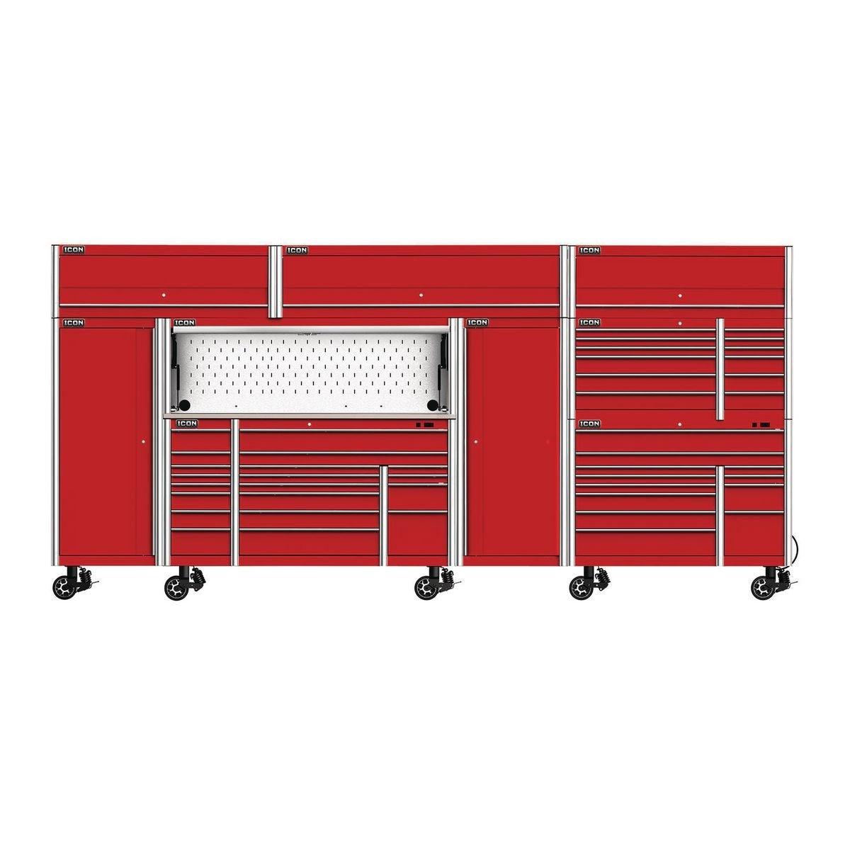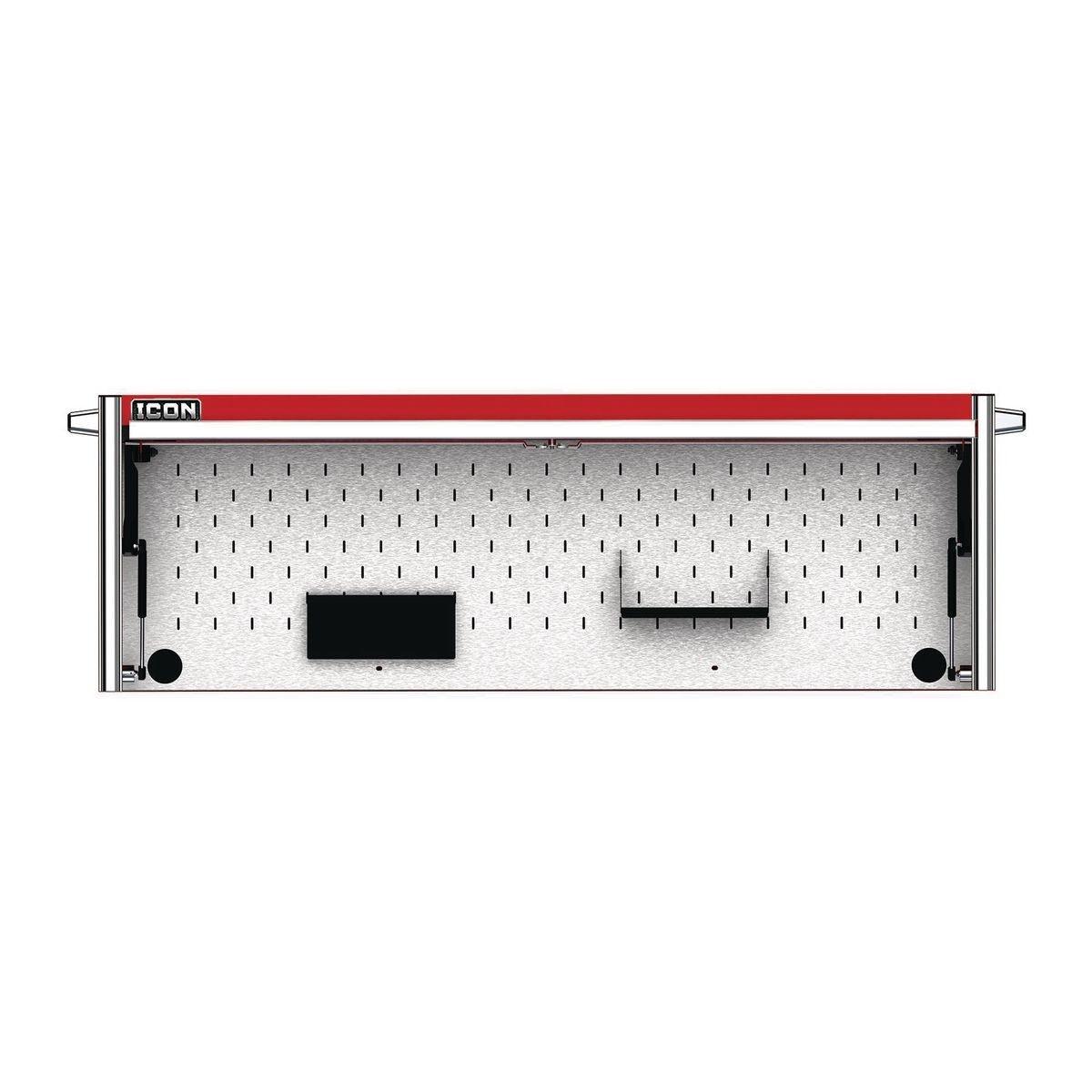 The Icon™ Professional Work Center Hutch provides a functional work area and lockable storage space for maximum security. It’s loaded with features like power access ports, an easy-open pneumatic assist door and a stainless steel slot-wall that’s compatible with Icon™ tool holders and shelves. All Icon™ work centers can be enhanced with a 48-inch LED light bar with 3,000 lumens that lights automatically when the door is open. Includes a durable slot wall for hanging and arranging tools, including one Aerosol Can Holder and Document Shelf. Icon™ Work Center Hutches are fully modular working with 56 in. and 73 in. systems. All Icon™ storage comes with free door-to-door delivery and a lifetime warranty - plus, a full line of replacement parts is available. It’s the only storage solution you’ll ever need. A stainless top is required to use the Work Center Hutch.