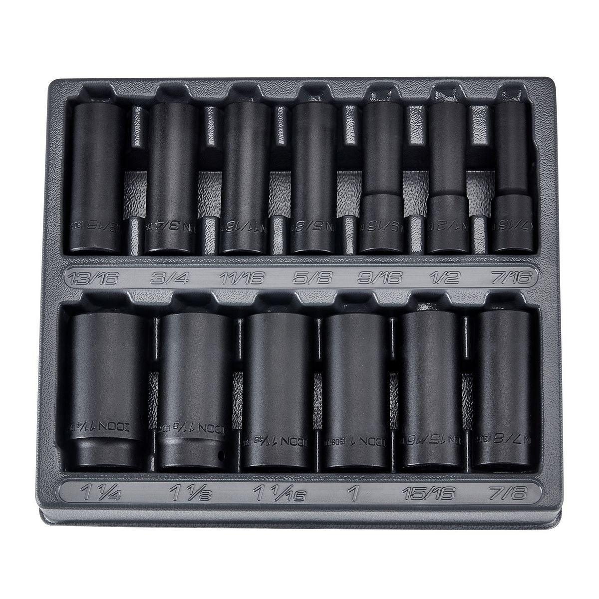 1/2 in. Drive SAE Professional Deep Impact Socket Set, 13 Pc.