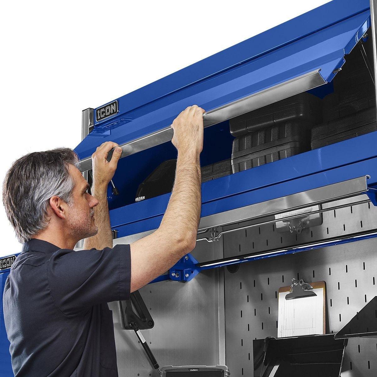 The Icon™ Professional Overhead unit can be added to the work center or top chest for additional open storage space and is ideal for specialty kits and tool cases. All Icon™ storage comes with free door-to-door delivery and a lifetime warranty—plus, a full line of replacement parts is available. It’s the only storage solution you’ll ever need.