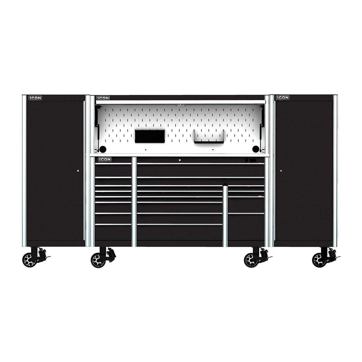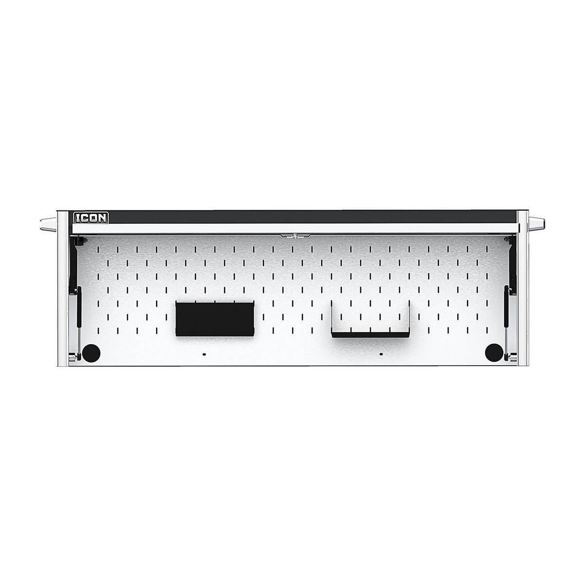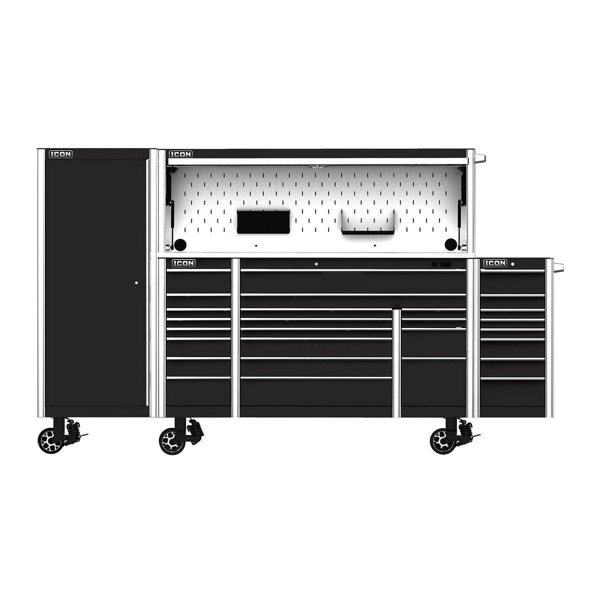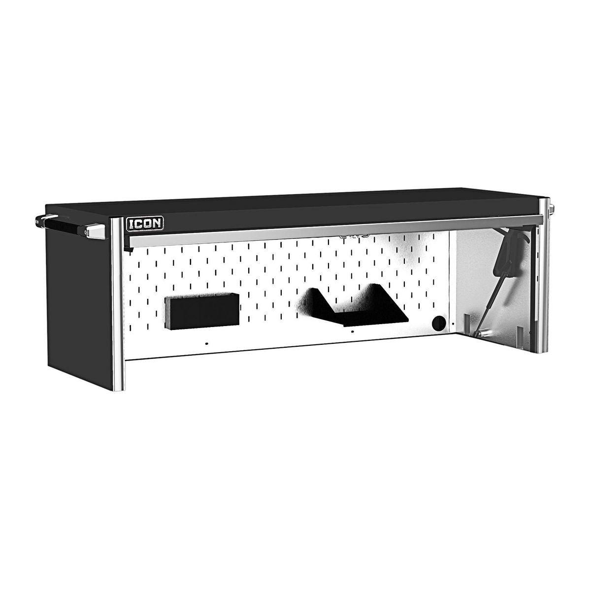 The Icon™ Professional Work Center Hutch provides a functional work area and lockable storage space for maximum security. It’s loaded with features like power access ports, an easy-open pneumatic assist door and a stainless steel slot-wall that’s compatible with Icon™ tool holders and shelves. All Icon™ work centers can be enhanced with a 48-inch LED light bar with 3,000 lumens that lights automatically when the door is open. Includes a durable slot wall for hanging and arranging tools, including one Aerosol Can Holder and Document Shelf. Icon™ Work Center Hutches are fully modular working with 56 in. and 73 in. systems. All Icon™ storage comes with free door-to-door delivery and a lifetime warranty - plus, a full line of replacement parts is available. It’s the only storage solution you’ll ever need. A stainless top is required to use the Work Center Hutch.