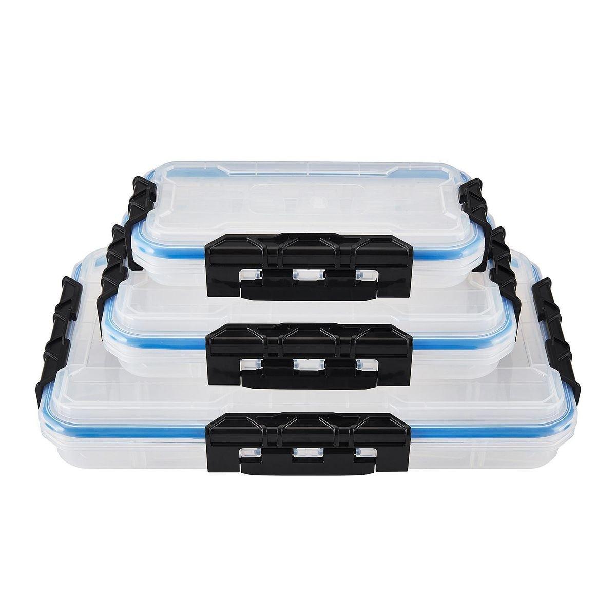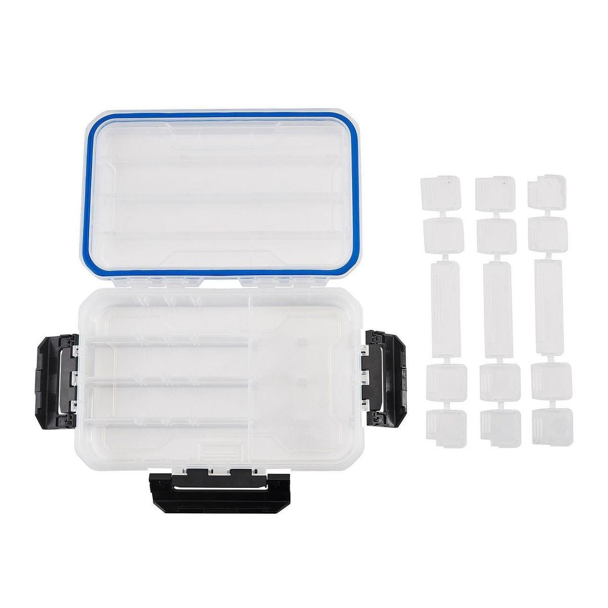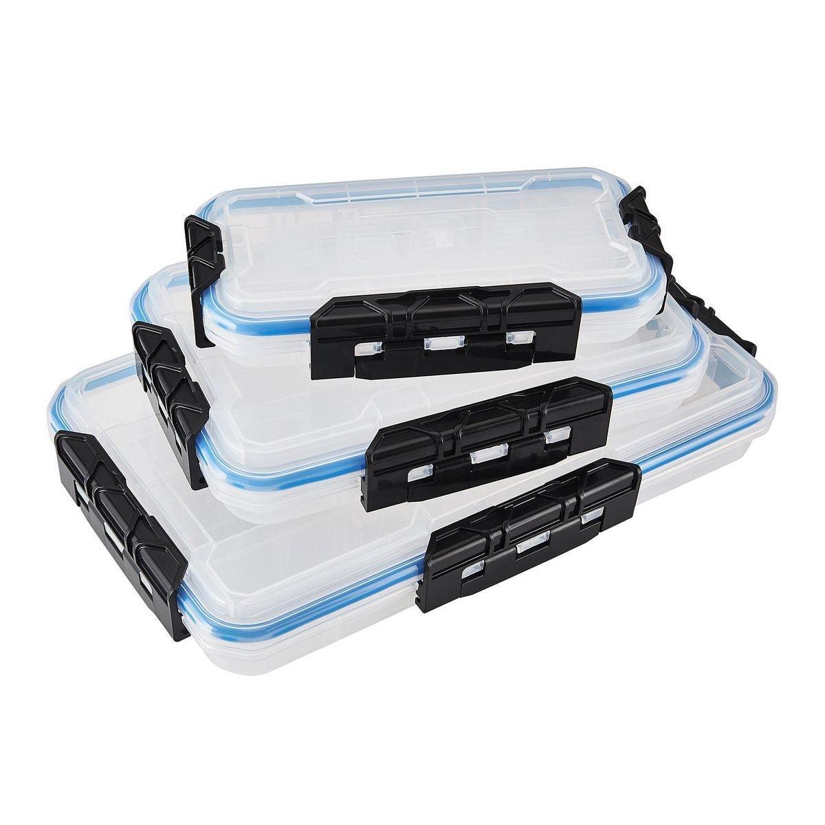 This clear medium organizer has up to 18 individual compartments for storing parts or supplies. Three strong easy-open latches keep the lid sealed tight to keep out dirt, dust and debris. This medium organizer is transparent so the contents can be easily viewed. Ideal for fasteners, fishing tackle, craft supplies, and more!
