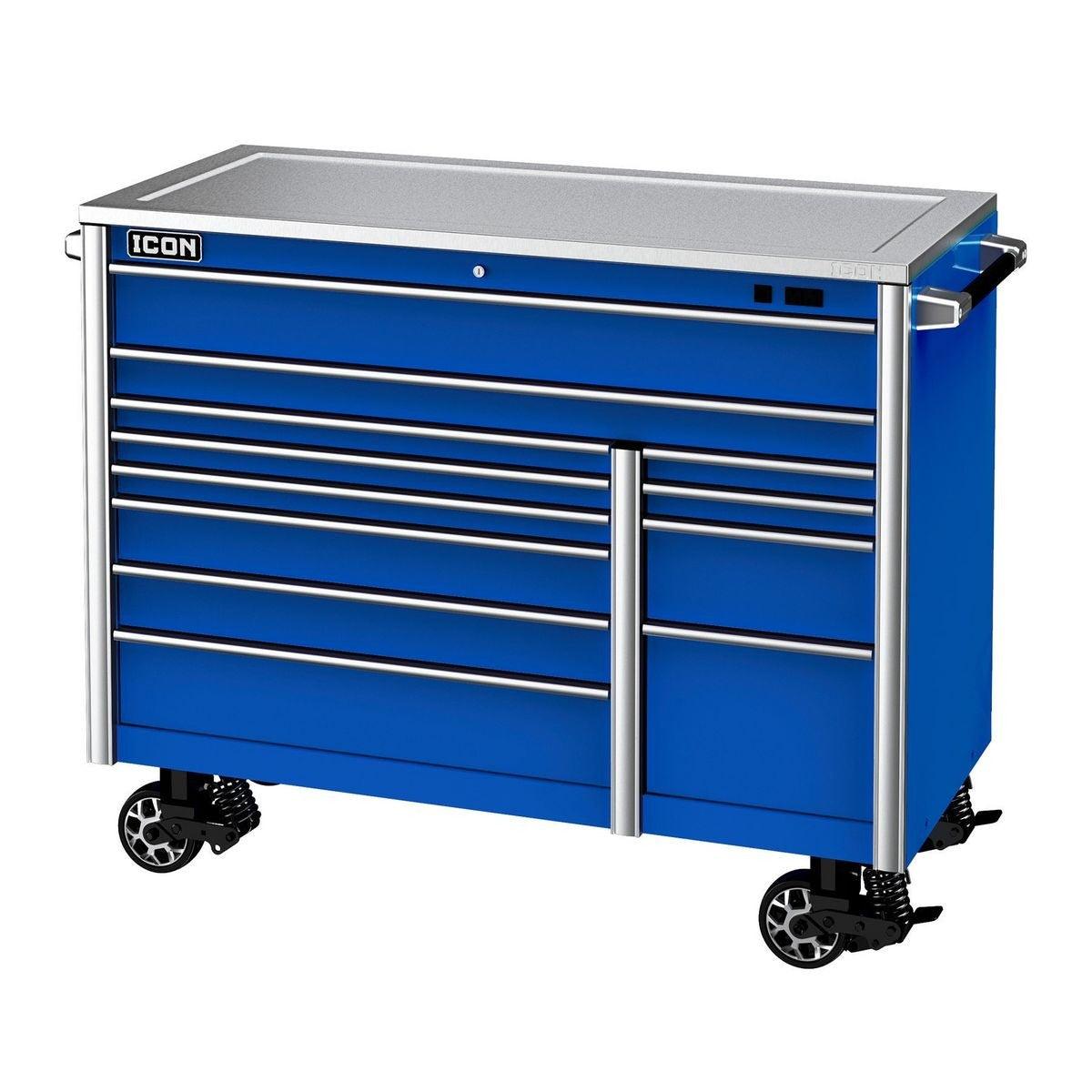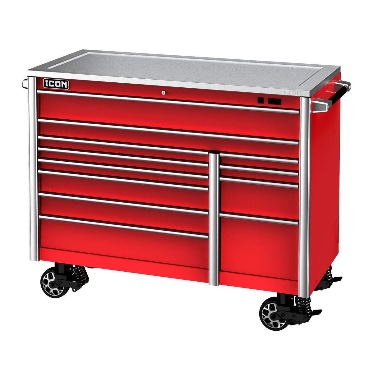 The Icon™ Professional Stainless Steel Top - which comes in three sizes and is required with each work center hutch - is constructed with heavy-duty 16-gauge steel to provide a stable and durable work surface. The raised lip keeps tools and parts from falling off the cabinet. All Icon™ storage comes with a lifetime warranty - plus, a full line of replacement parts is available. It’s the only storage solution you’ll ever need.
