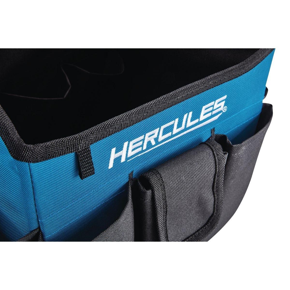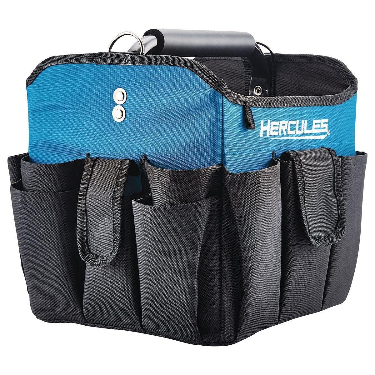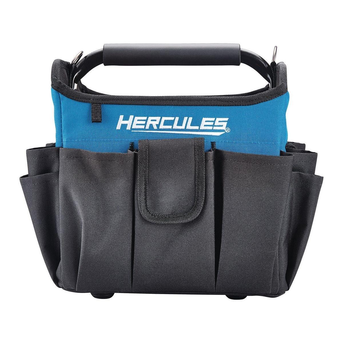 The Hercules® 10 in. Tool Tote is built with super-tough tear resistant fabric to withstand the rigors of jobsite use. An extra-large center compartment with 22 pockets gives you plenty of space to organize and carry tools, accessories and fasteners. The padded shoulder strap lets you take a load off during transport and the reinforced steel grip handle won't stretch or tear.