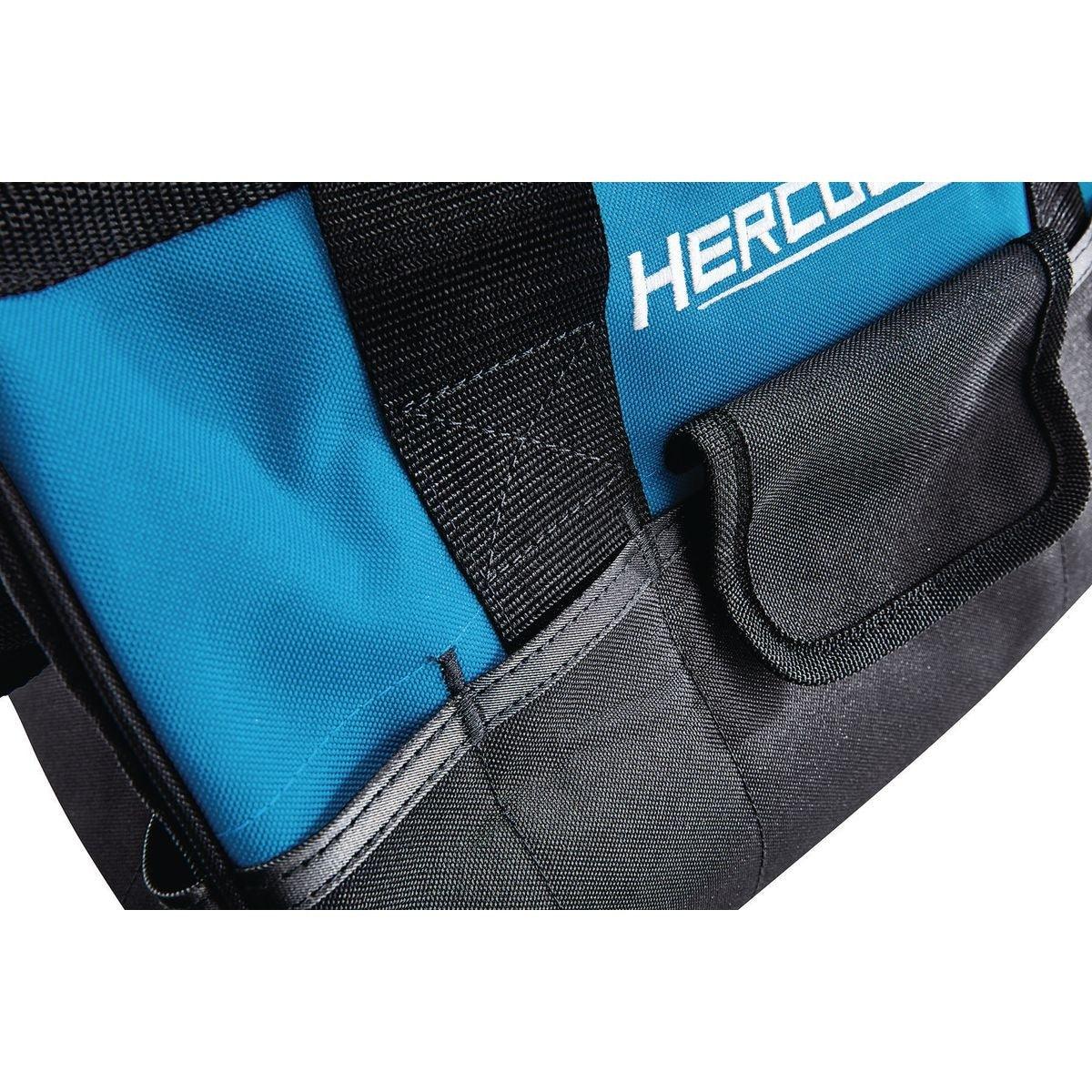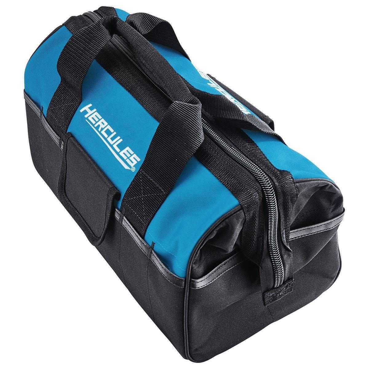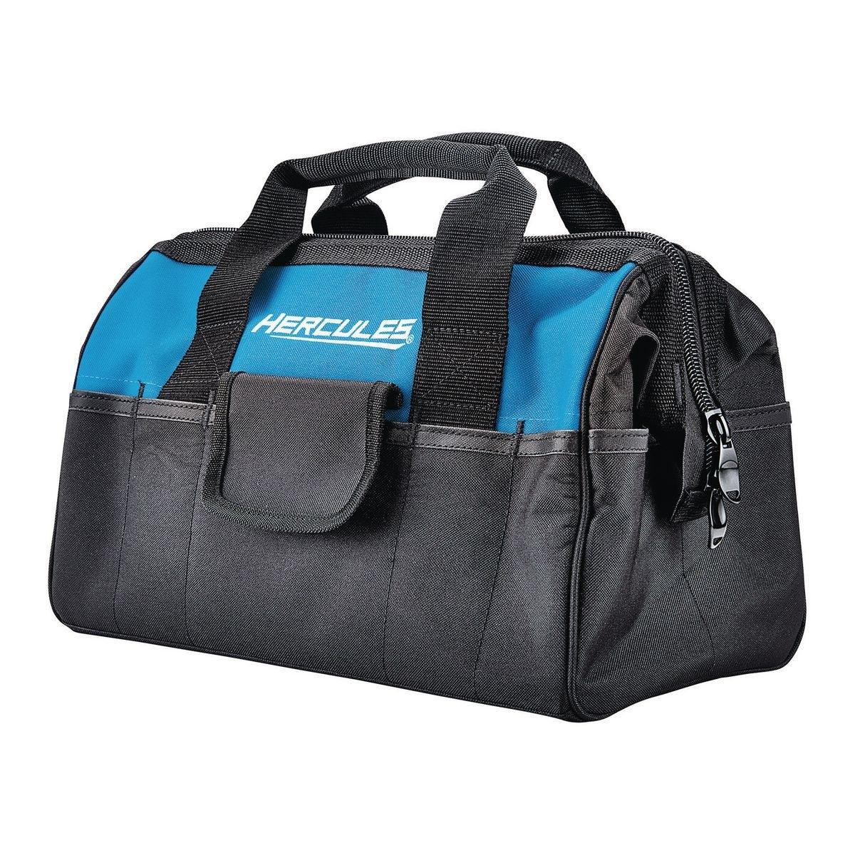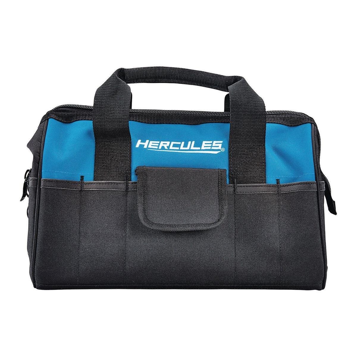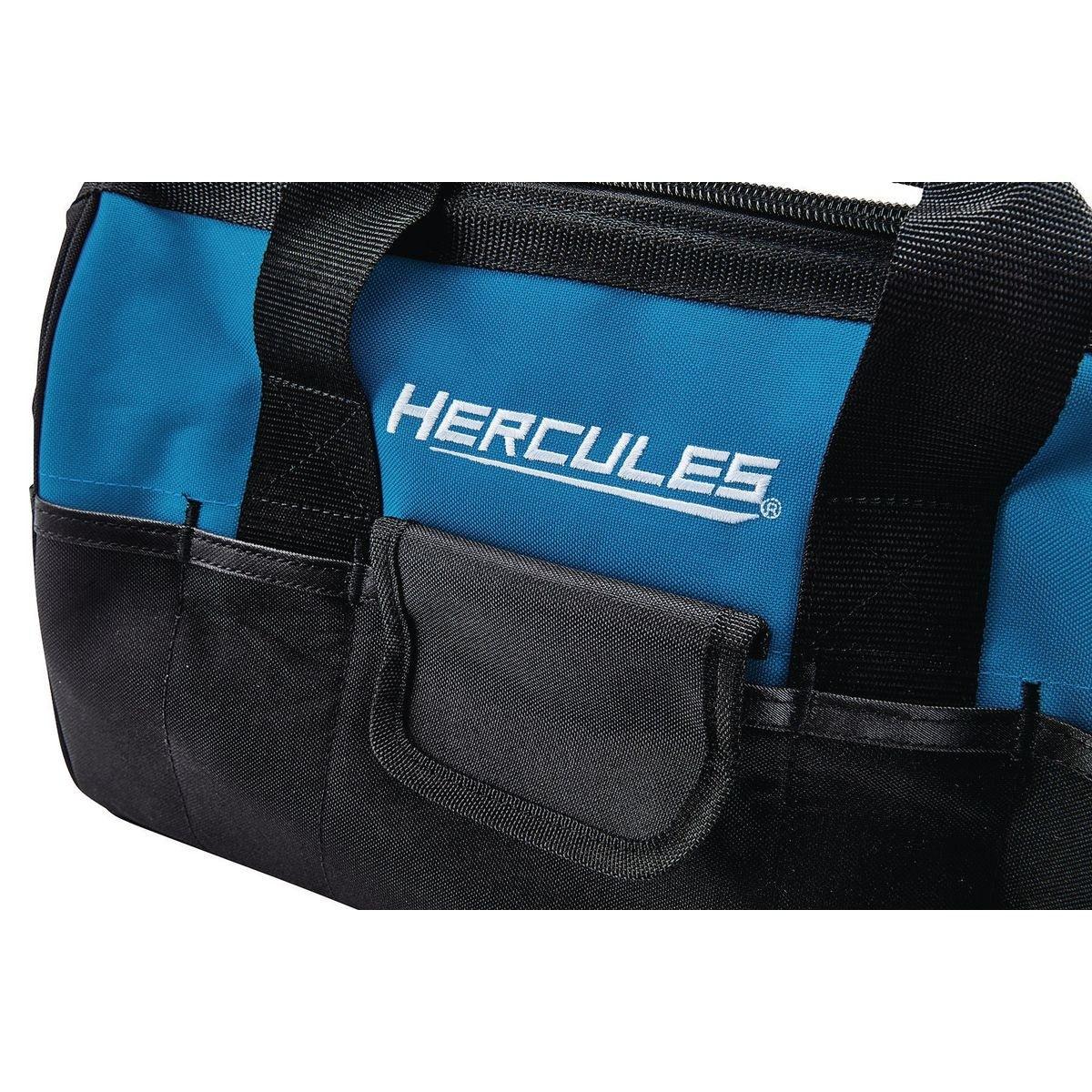 This 15 pocket tool tote bag from Hercules® is constructed with SUPER-TOUGH tear-resistant fabric for the strength and durability for carrying the most important tools for any job. Featuring durable, heavy duty stitching, large storage compartment with 15 pockets, and reinforced carrying handles.